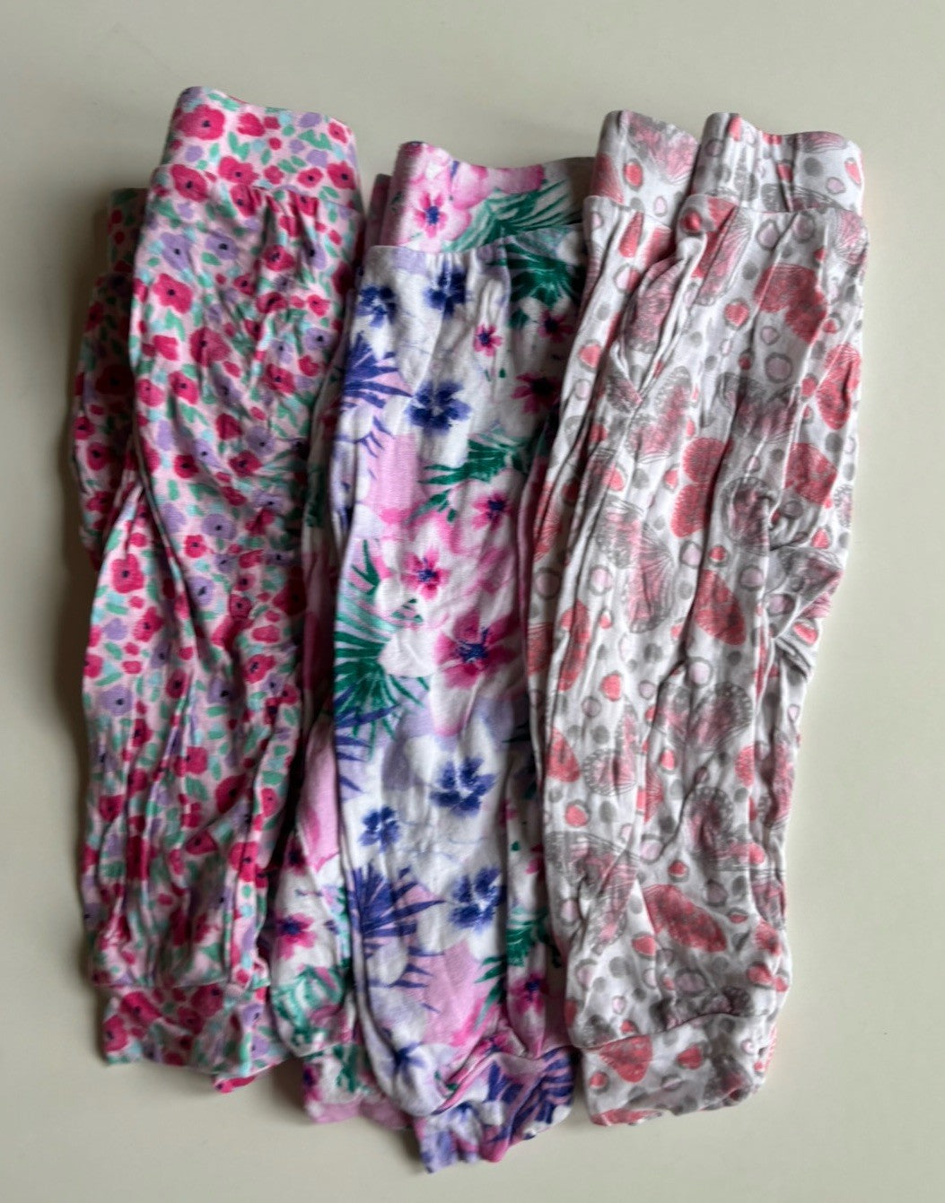 Dymples baby girl size 3-6 months x3 relaxed leggings pants pink flora