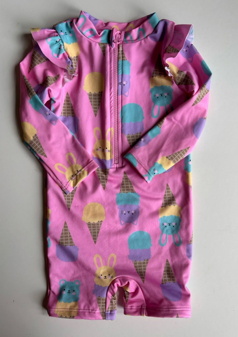 Dymples baby girl size 6-12 months pink ice cream animals bathers swim