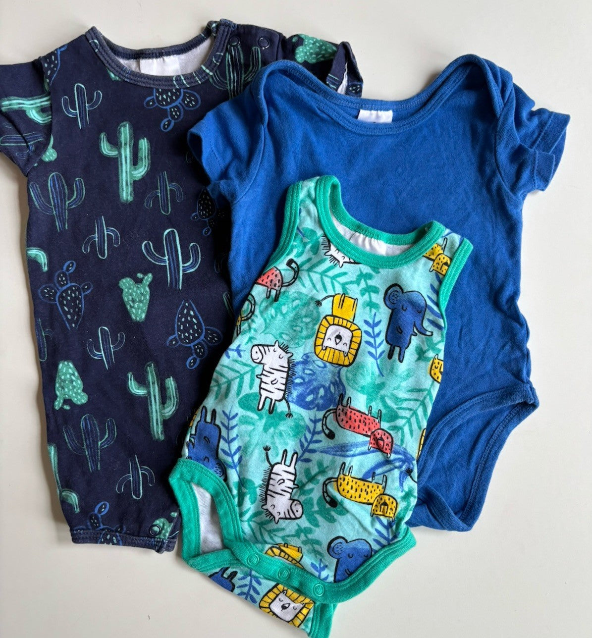 Dymples baby size 3-6 months blue green tops cactus romper bundle, VGU