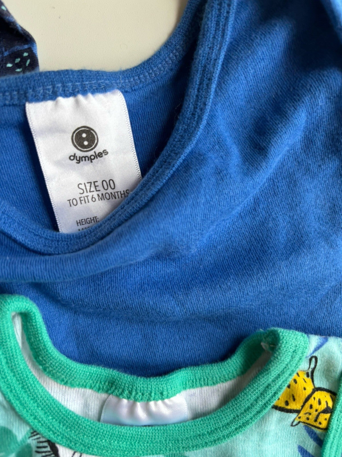 Dymples baby size 3-6 months blue green tops cactus romper bundle, VGUC