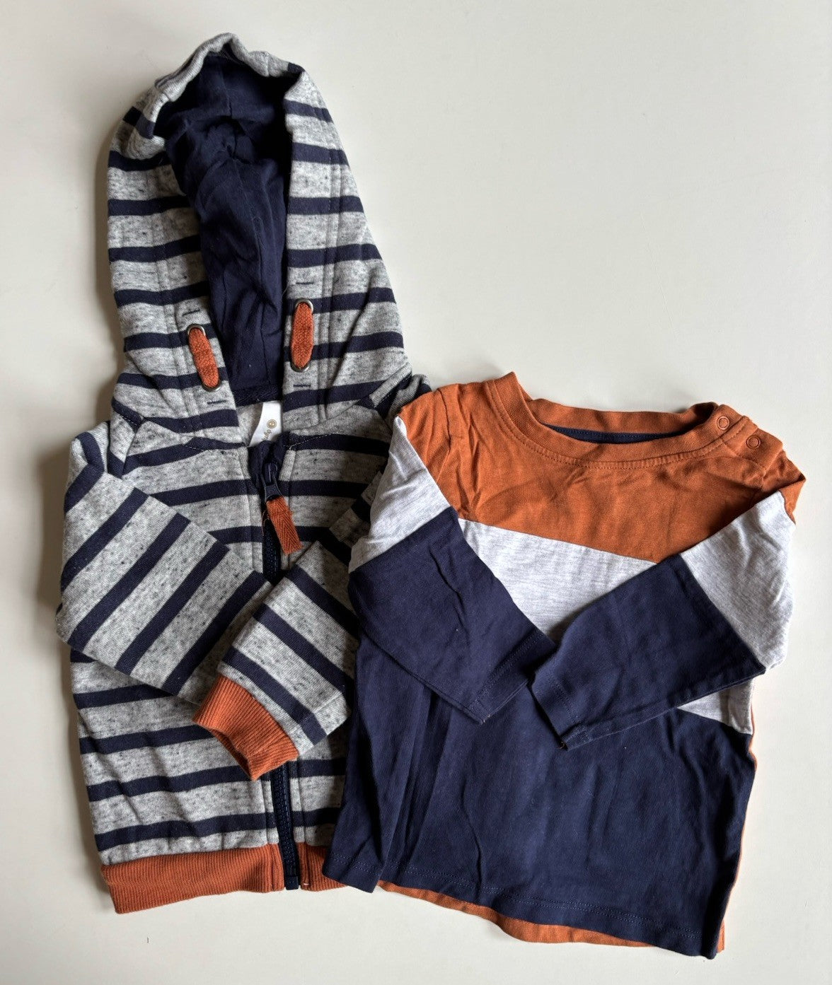 Dymples baby size 3-6 months blue grey brown stripe top jumper bundle, VGUC