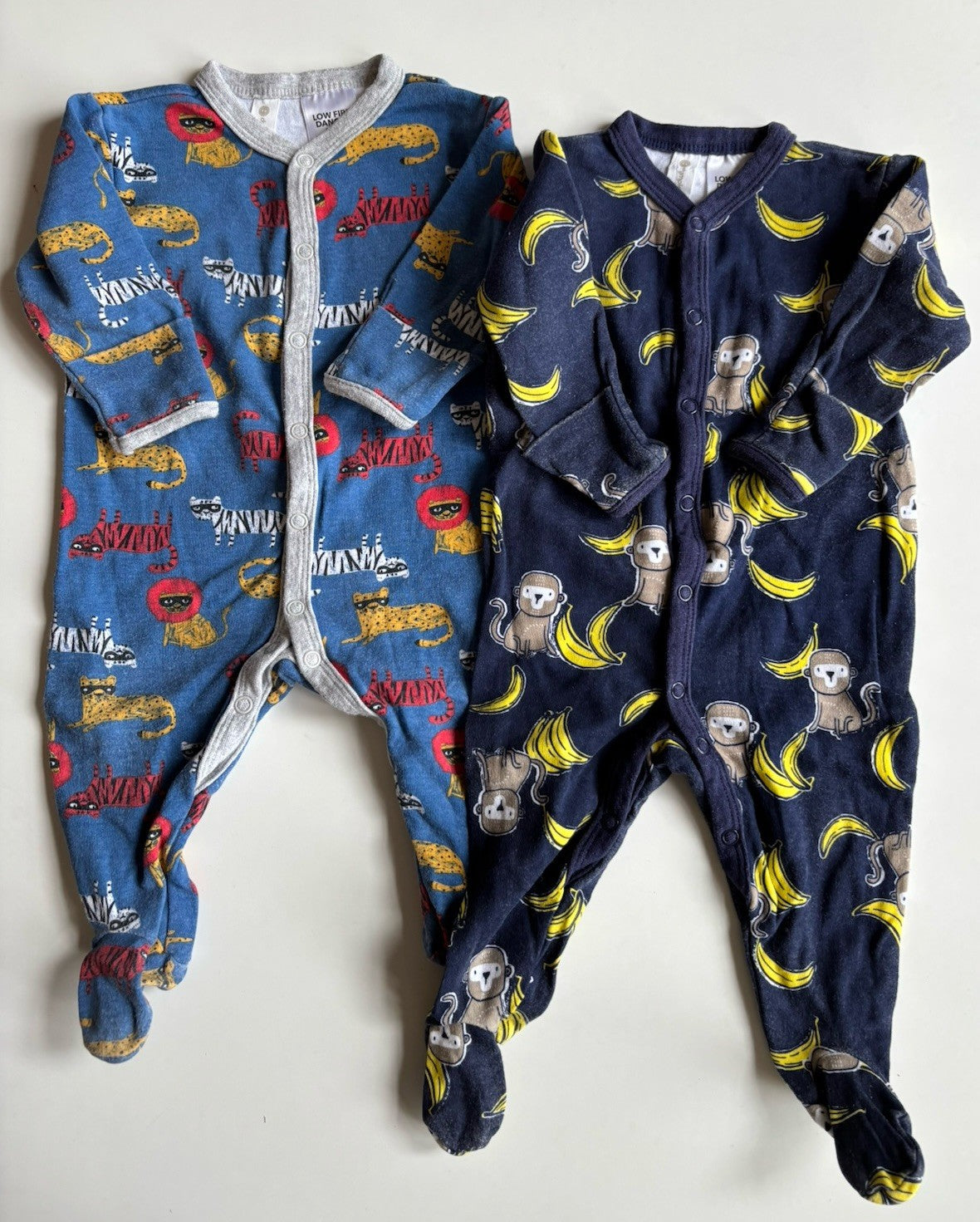 Dymples baby size 3-6 months x2 blue animals one-pieces, VGUC