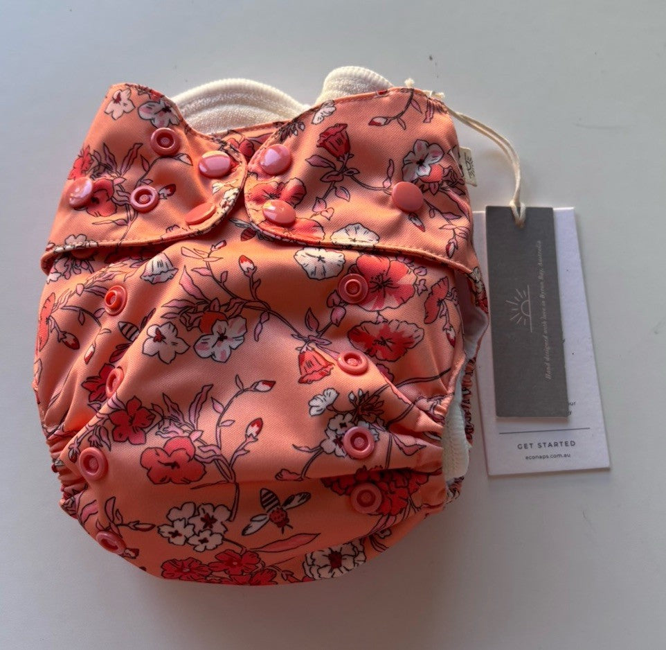 Econaps baby girl one size cloth nappy orange floral, BNWT