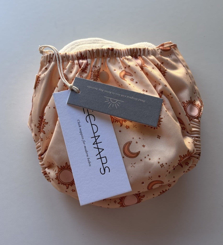 Econaps baby one size cloth nappy yellow suns, BNWT