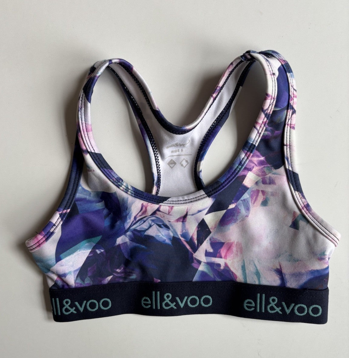Ell & Voo kids girls size 5 purple patterned activewear crop top, VGUC