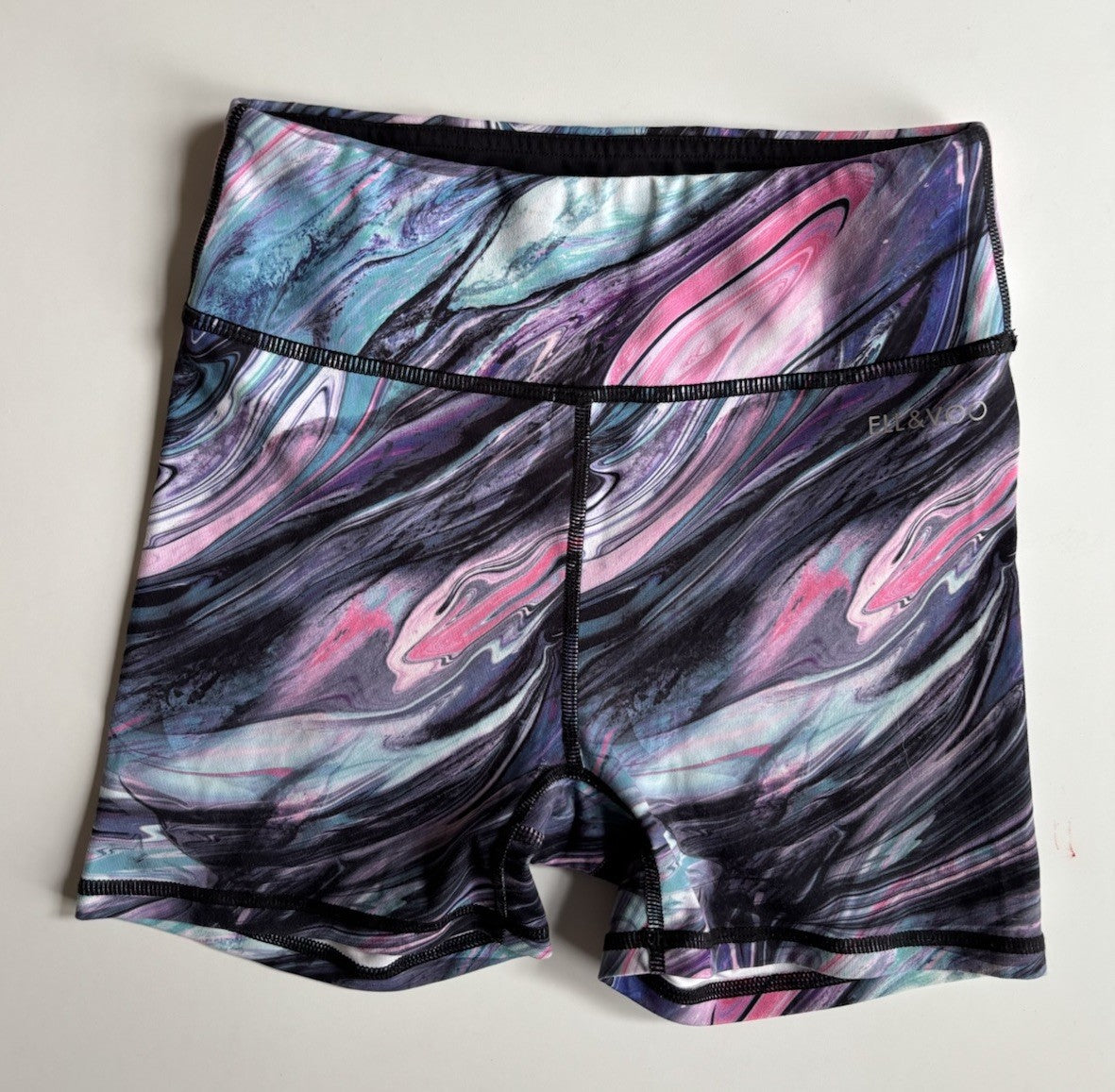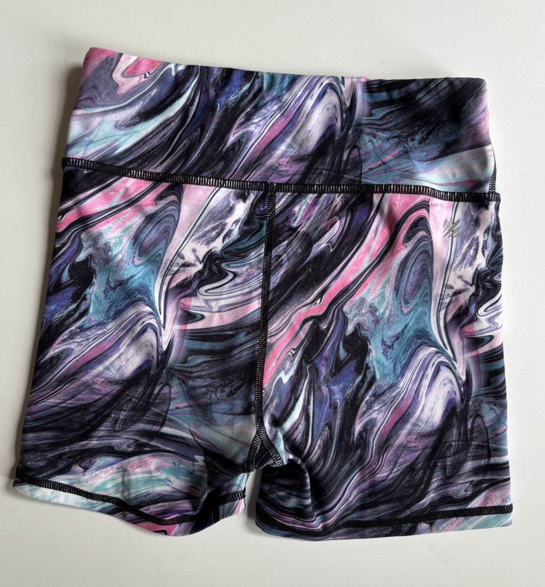 Ell & Voo kids girls size 6 pink blue marble activewear shorts, VGUC