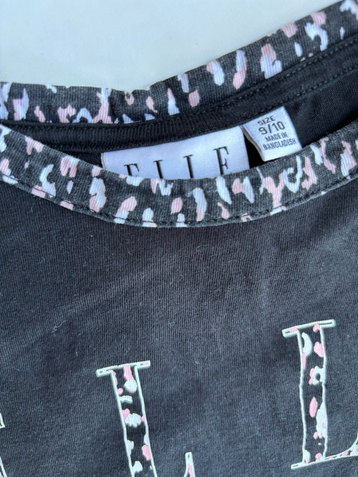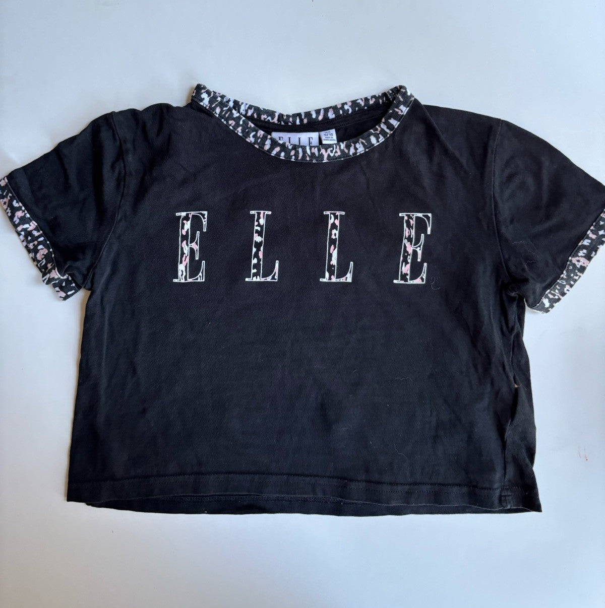ELLE Junior kids girls size 9-10 black logo cropped t-shirt, VGUC