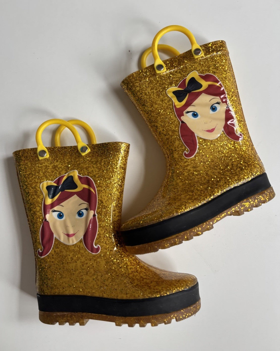 Emma Wiggle kids girls size 7 yellow glitter gumboots rain boots, VGUC