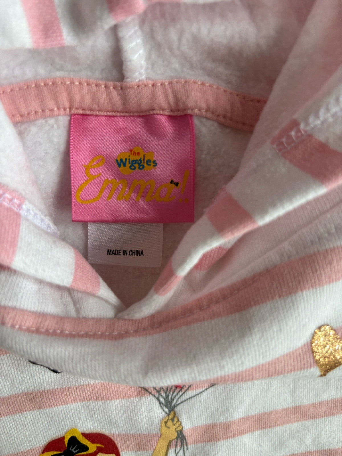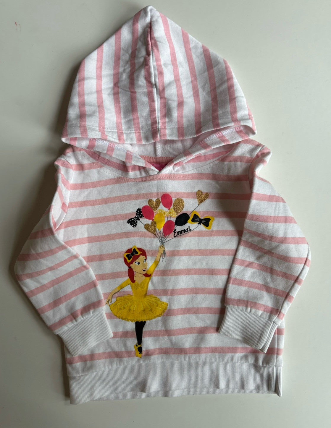 Emma Wiggle kids girls toddler size 3 pink stripe hooded jumper, VGUC