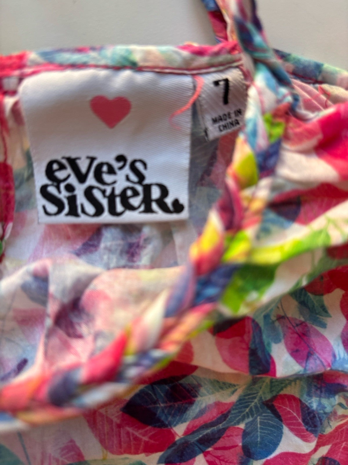Eve's Sister kids girls size 7 pink green leaves sleeveless dress, VGU