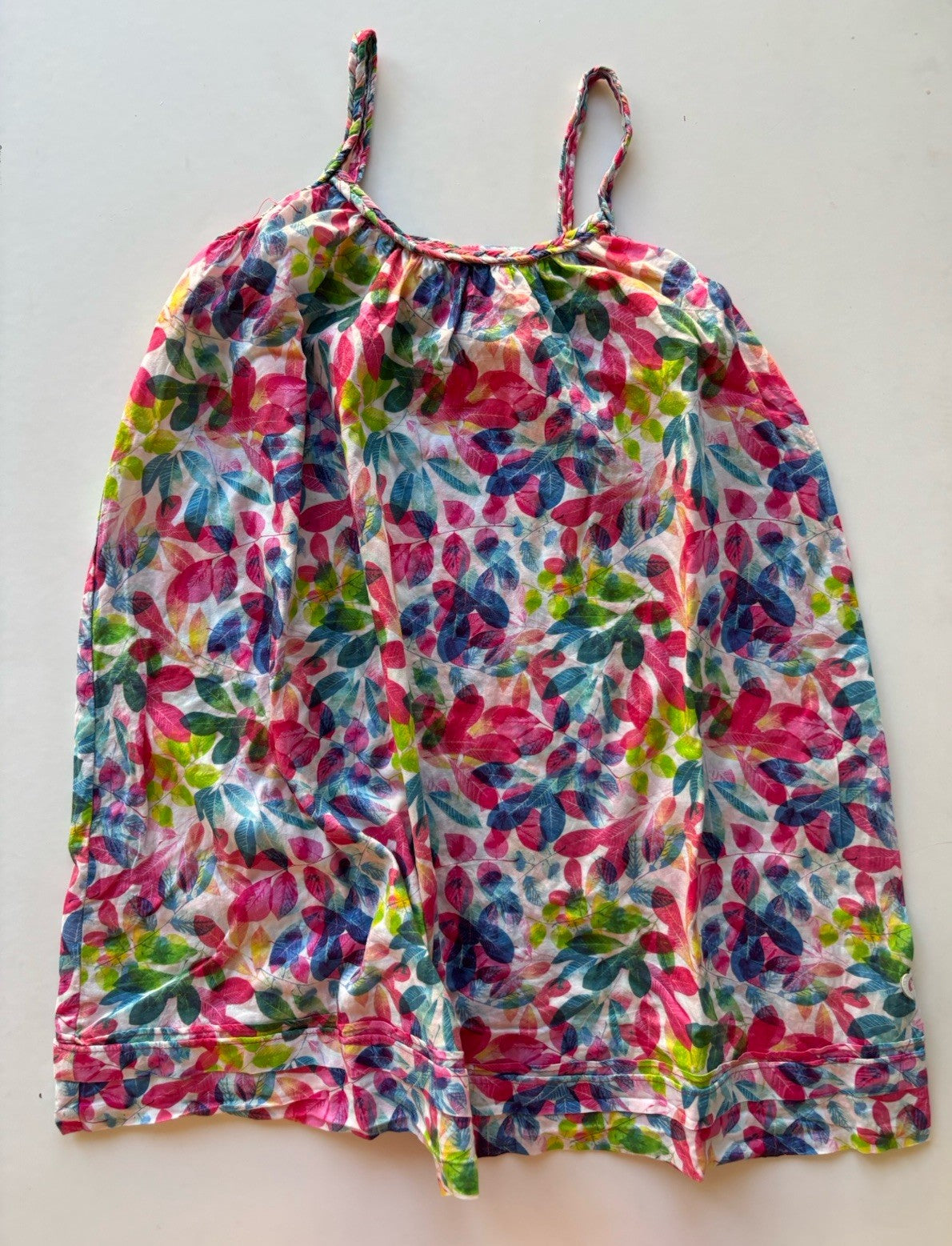 Eve's Sister kids girls size 7 pink green leaves sleeveless dress, VGUC