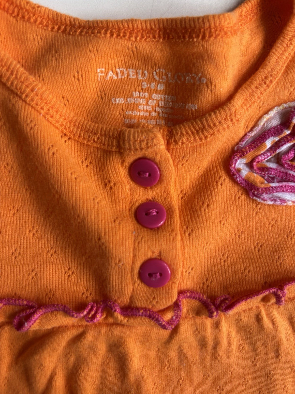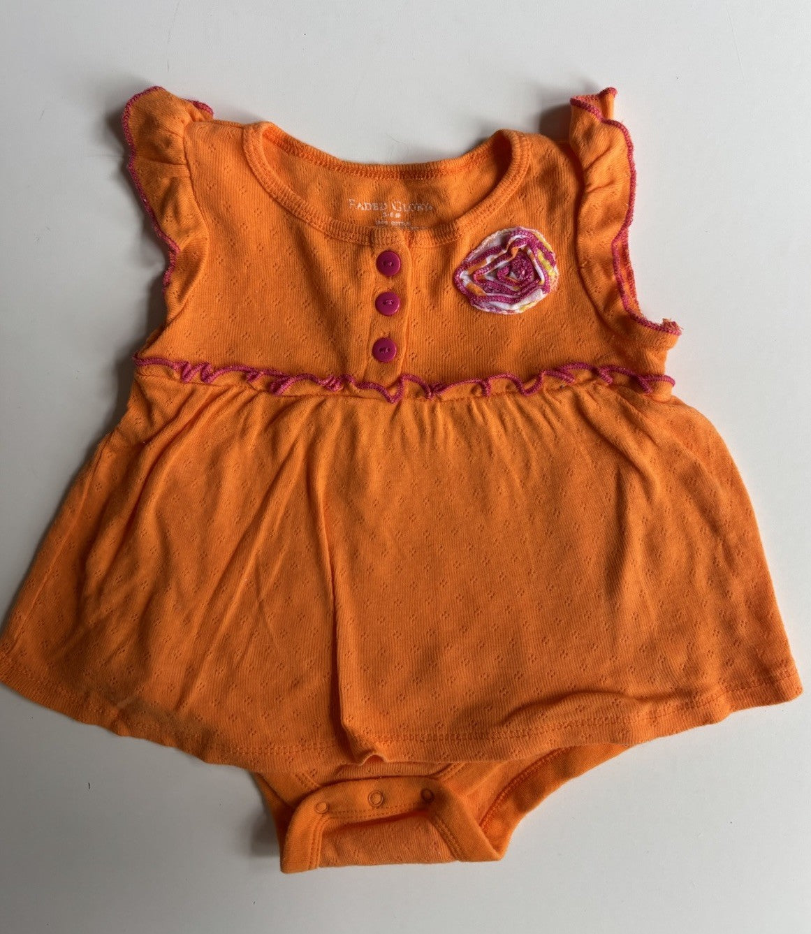 Faded Glory baby girl size 3-6 months orange bodysuit dress, VGUC