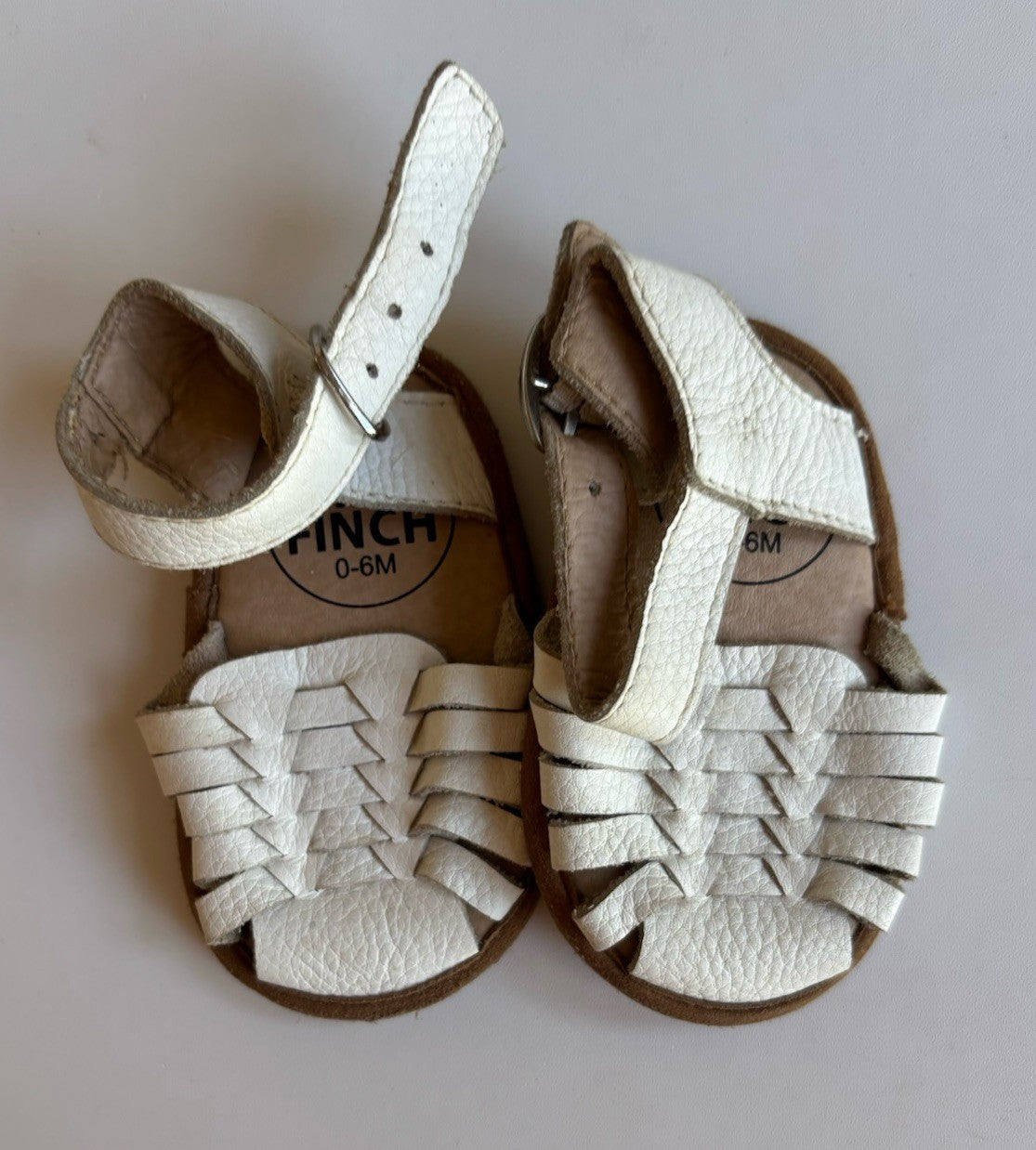 Fawn & Finch baby size 0-6 months white sandals shoes, VGUC