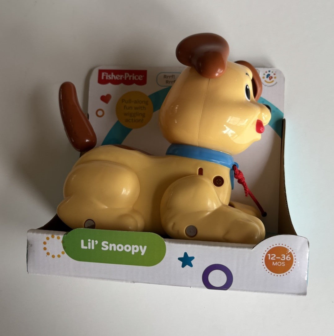 Fisher-Price Lil Snoopy pull-along toy plastic dog 12-36 months, BNWT