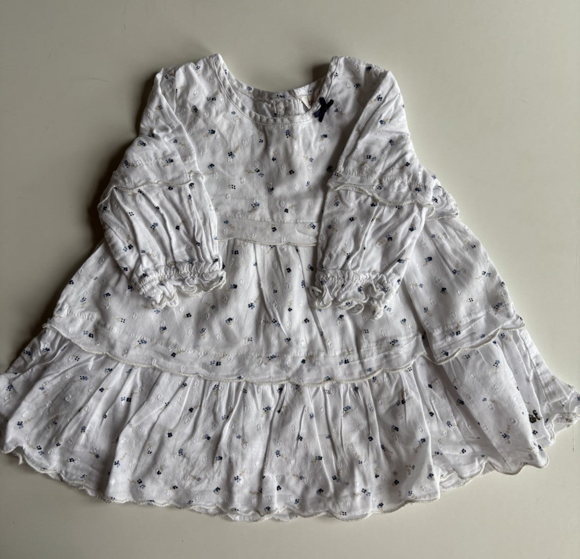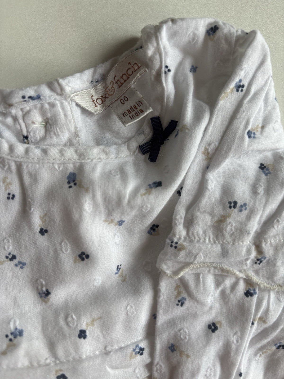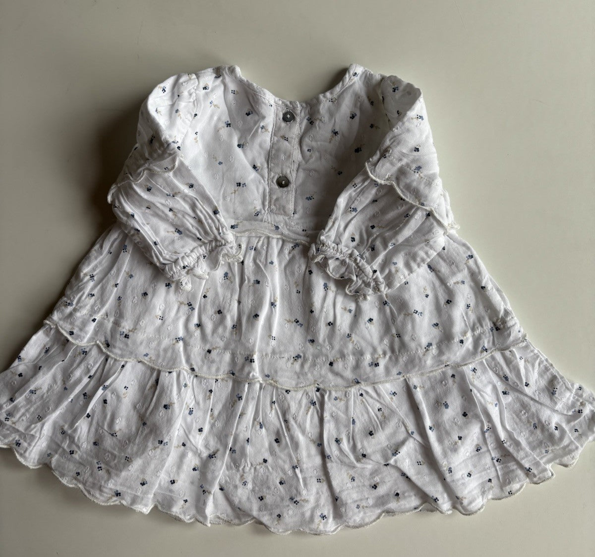 Fox & Finch baby girl size 3-6 months white blue floral tiered dress, VGUC