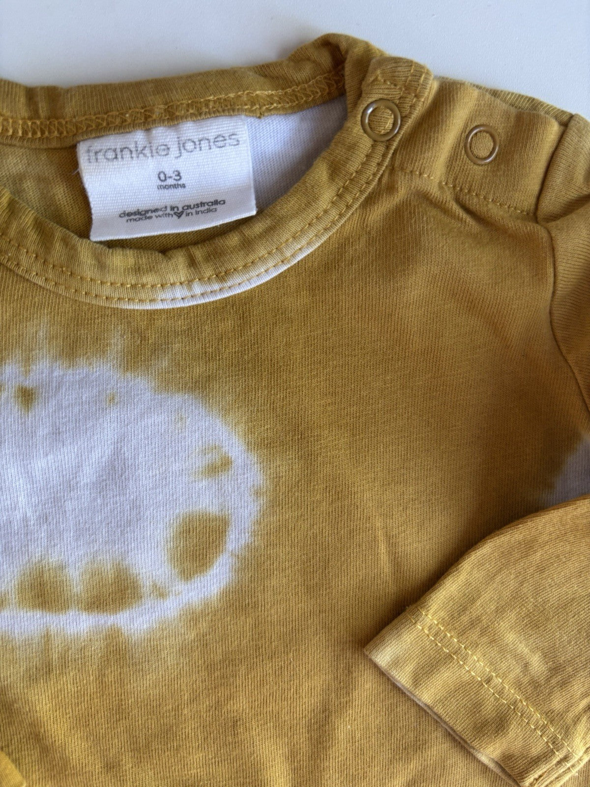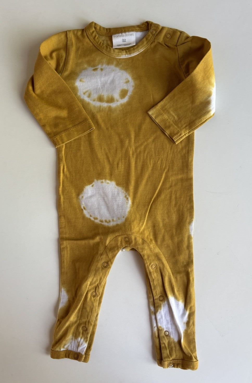 Frankie Jones baby size 0-3 months yellow white tiedye one-piece, VGUC