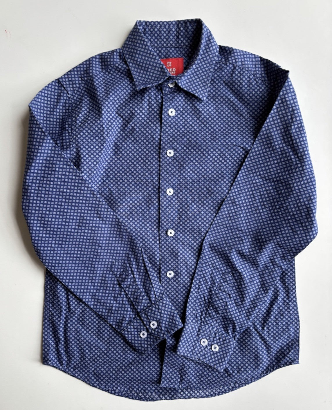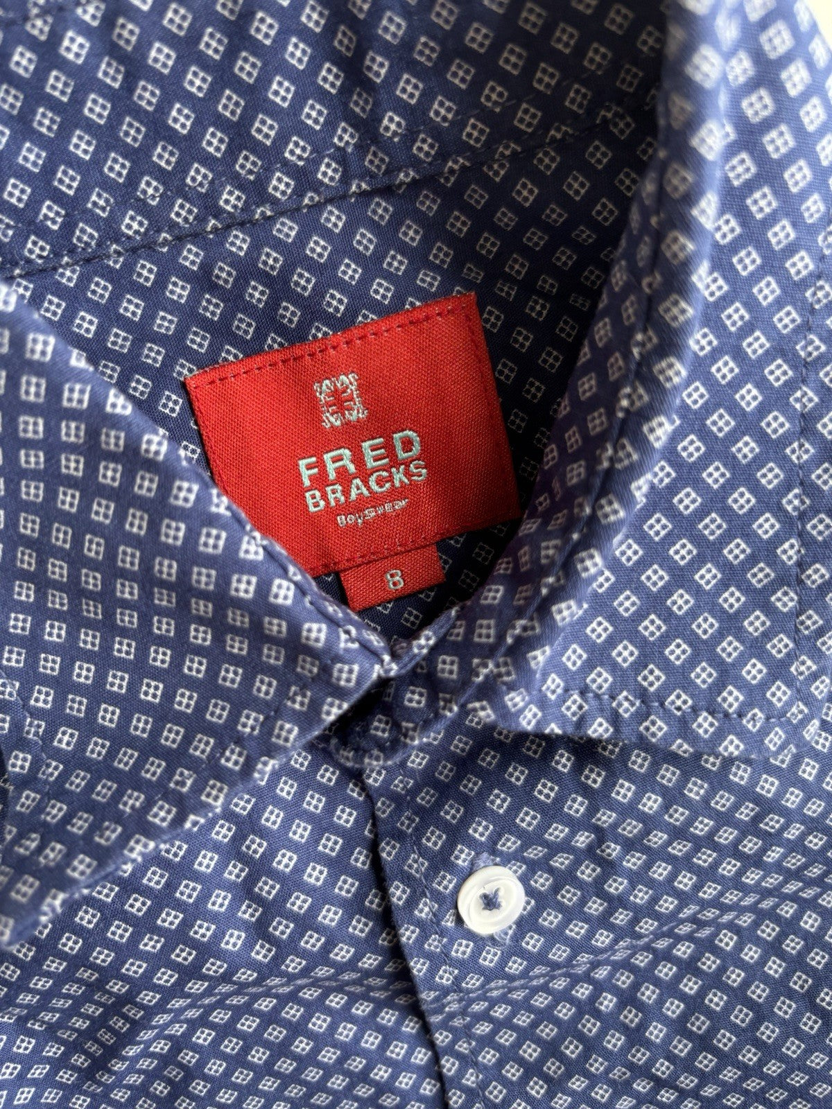 Fred Bracks kids boys size 8 blue patterned button up shirt, VGUC
