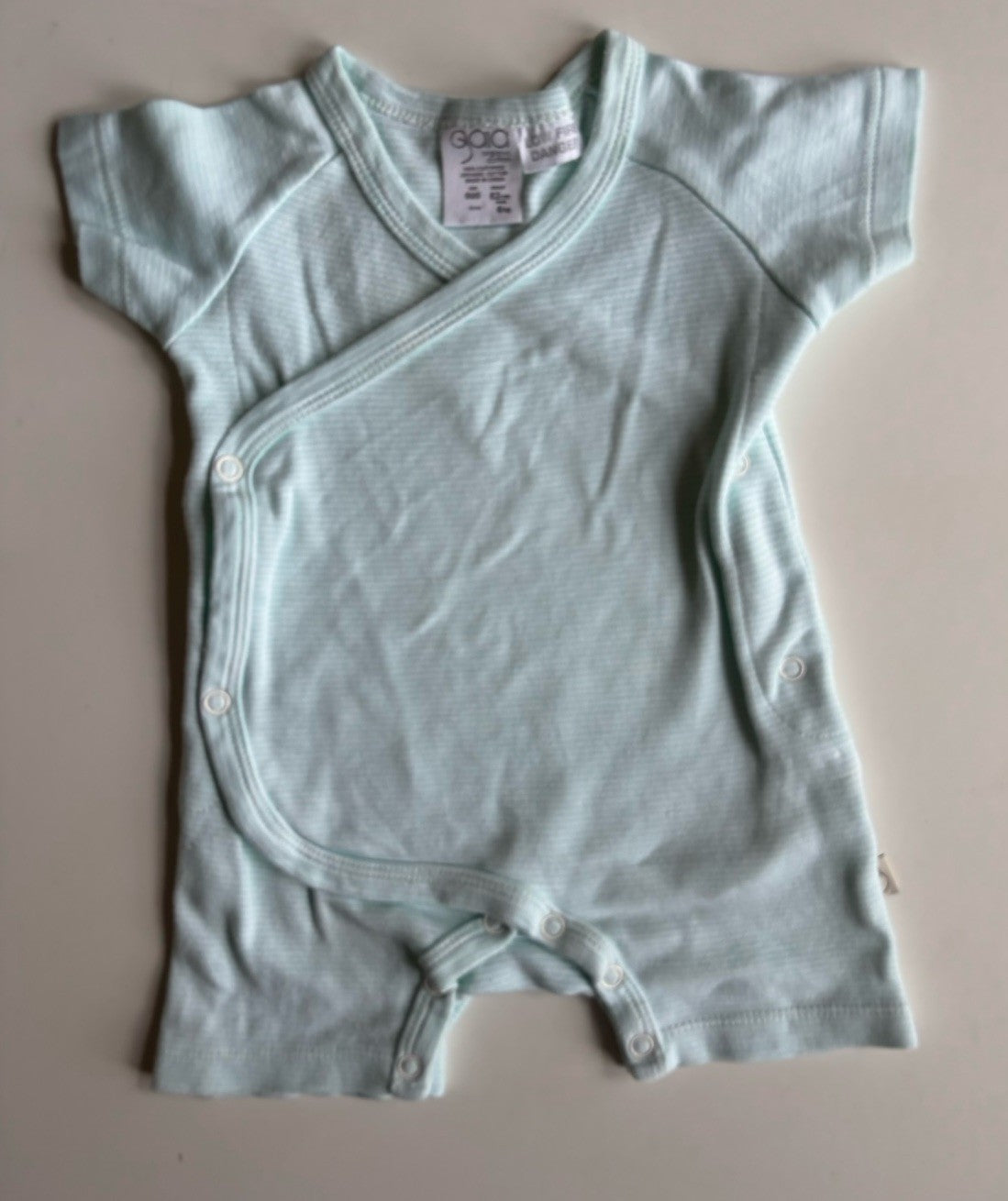 Gaia baby size 0-3 months green white stripe romper one-piece, VGUC