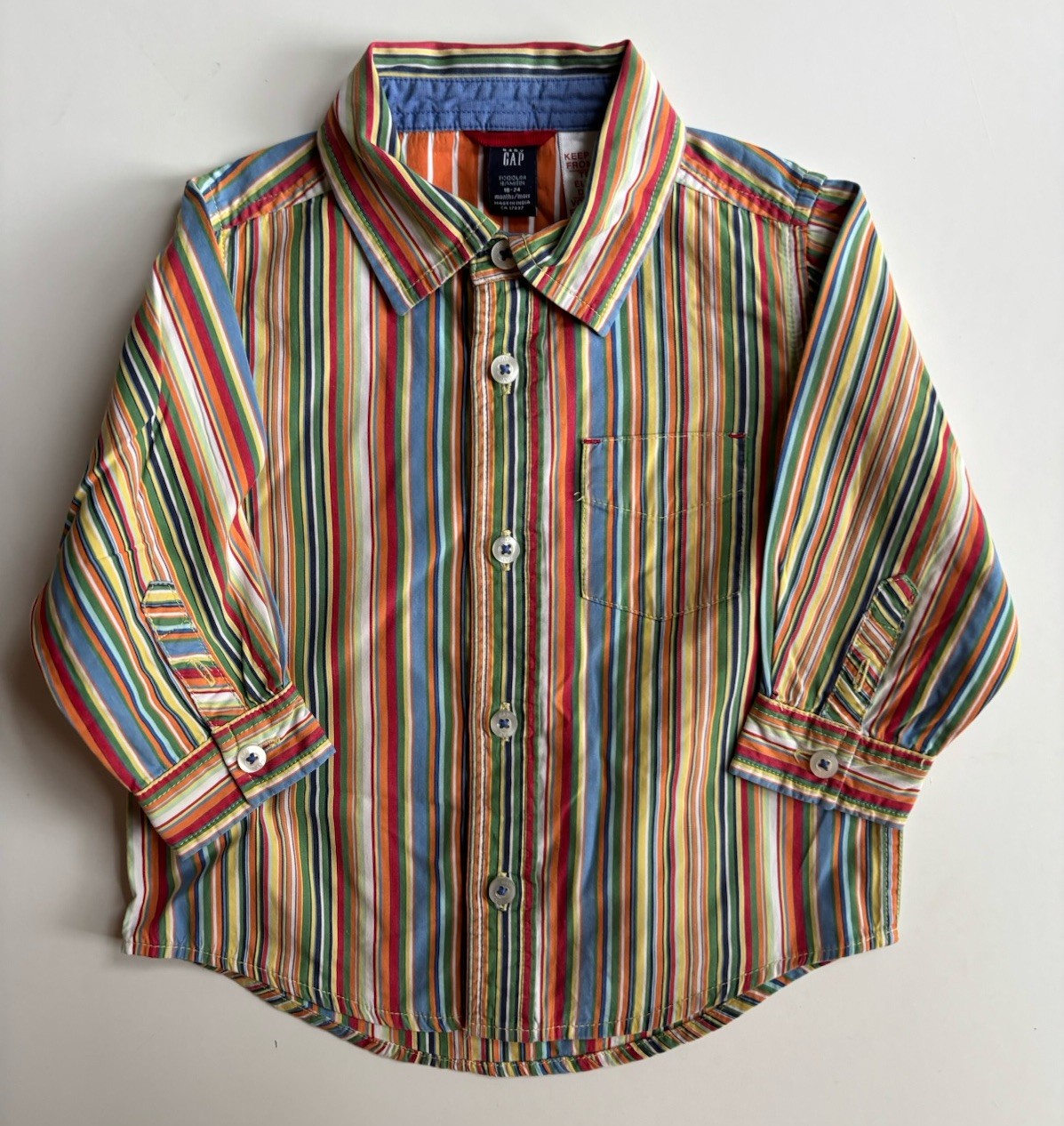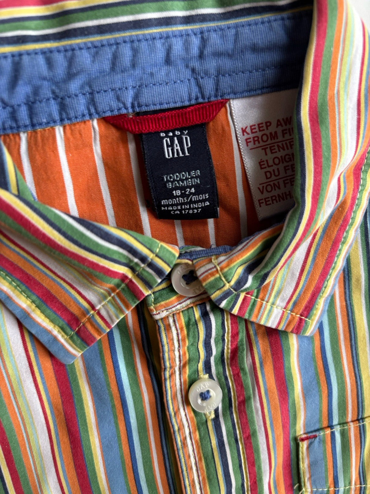 Gap baby boy size 18-24 months multicoloured stripe button up shirt, V
