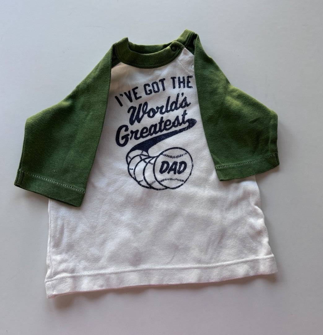 GAP baby boy size 3-6 months white green baseball long sleeve t-shirt,