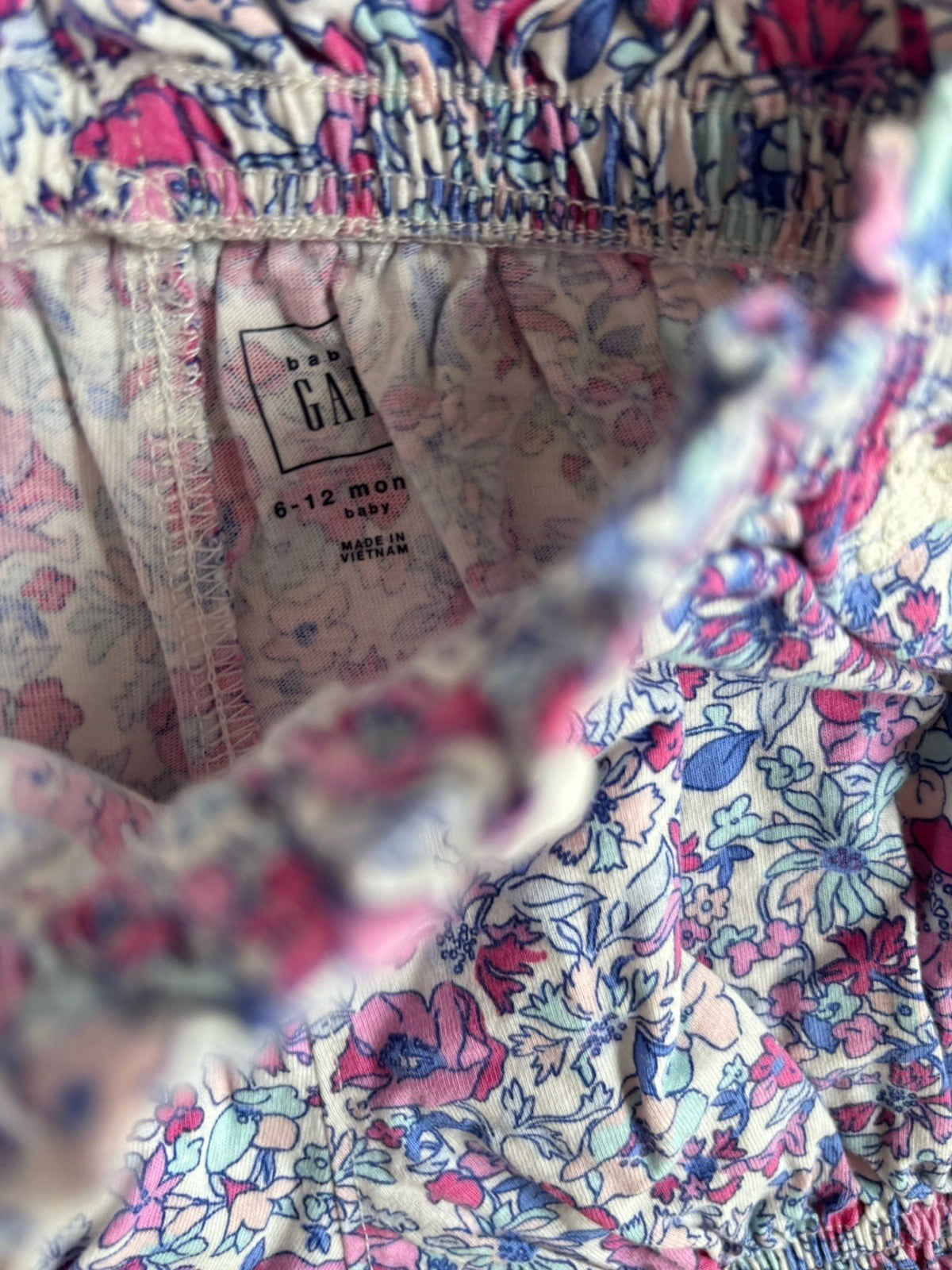 GAP baby girl size 6-12 months pink purple floral shorts, VGUC