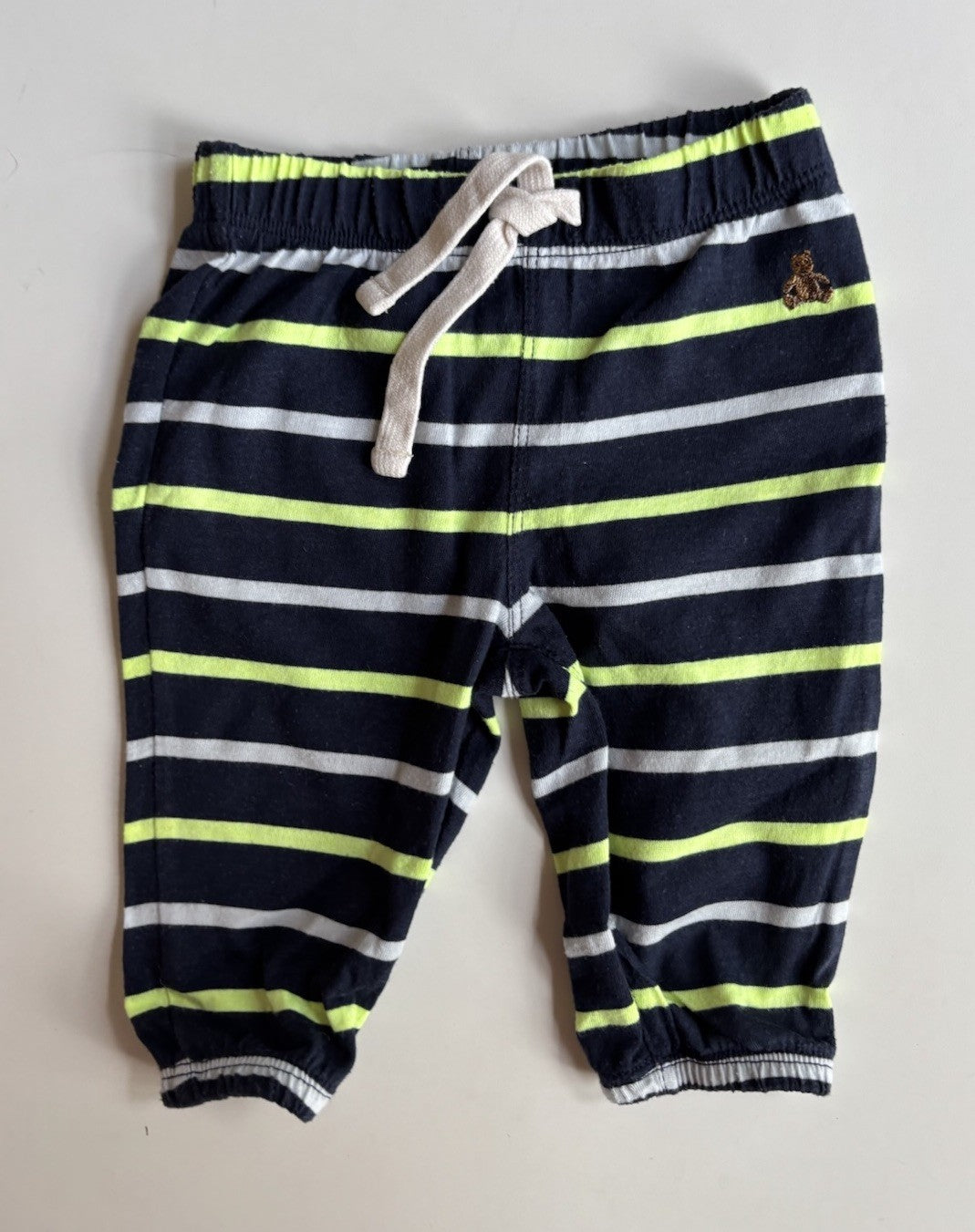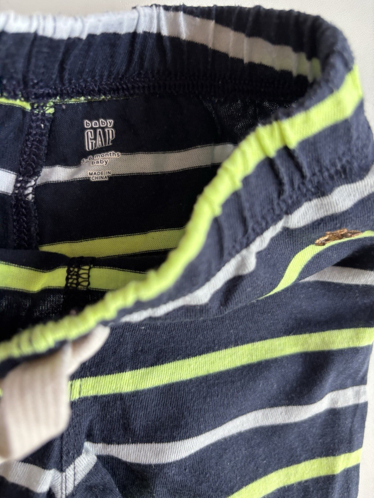 GAP baby size 3-6 months blue green white stripe leggings pants, VGUC