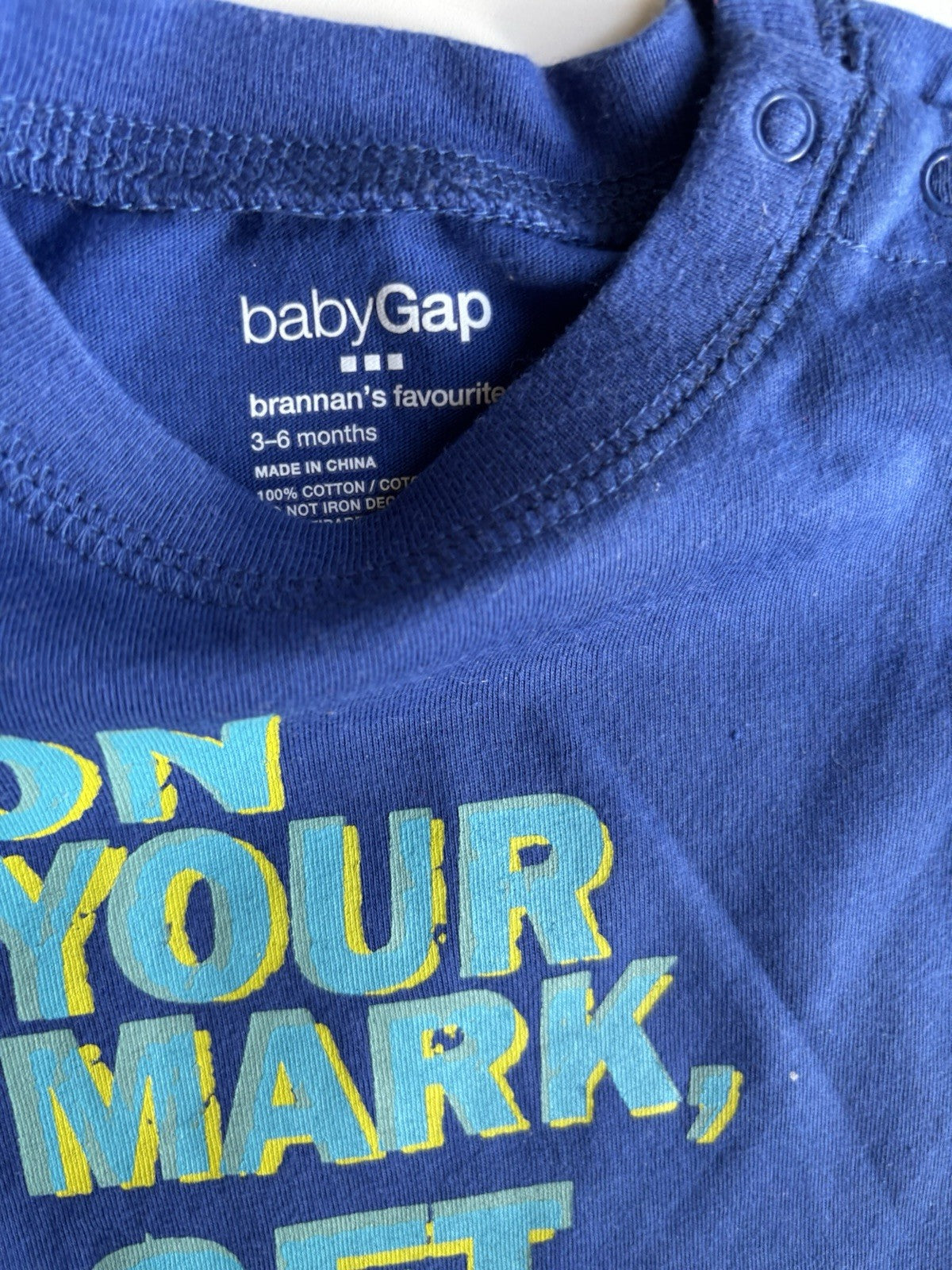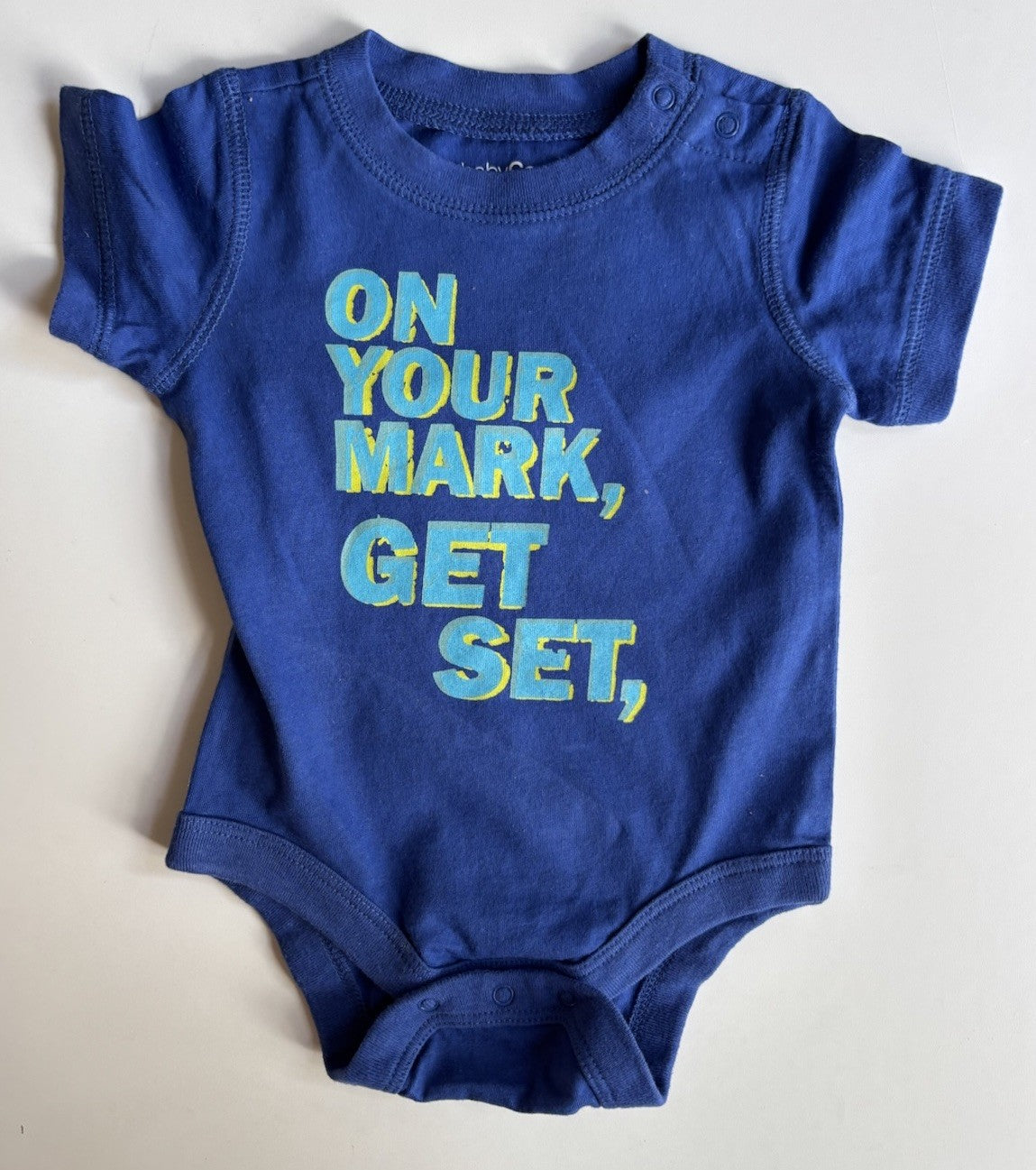 GAP baby size 3-6 months blue short sleeve bodysuit - Get Set, Go!, VGUC