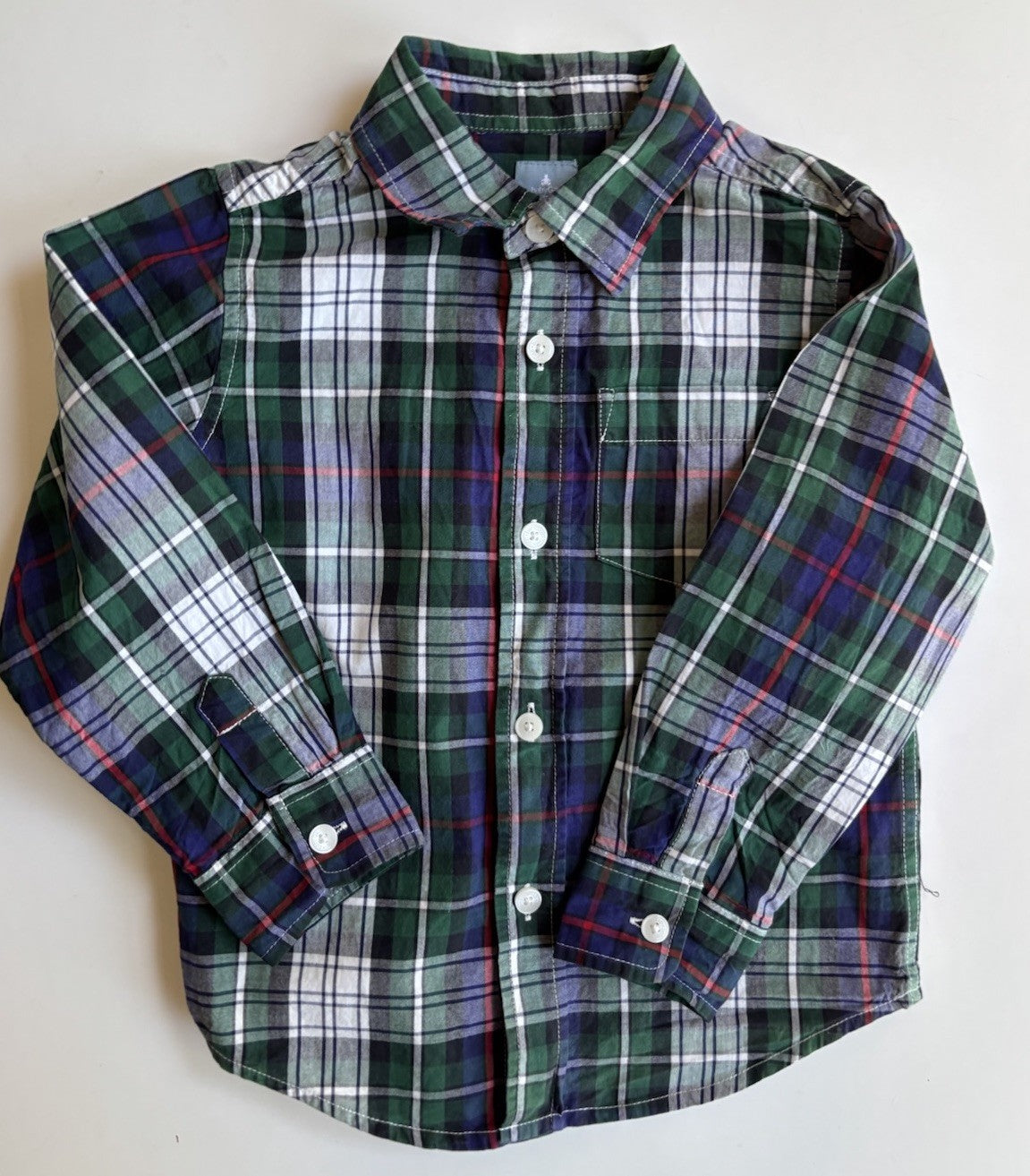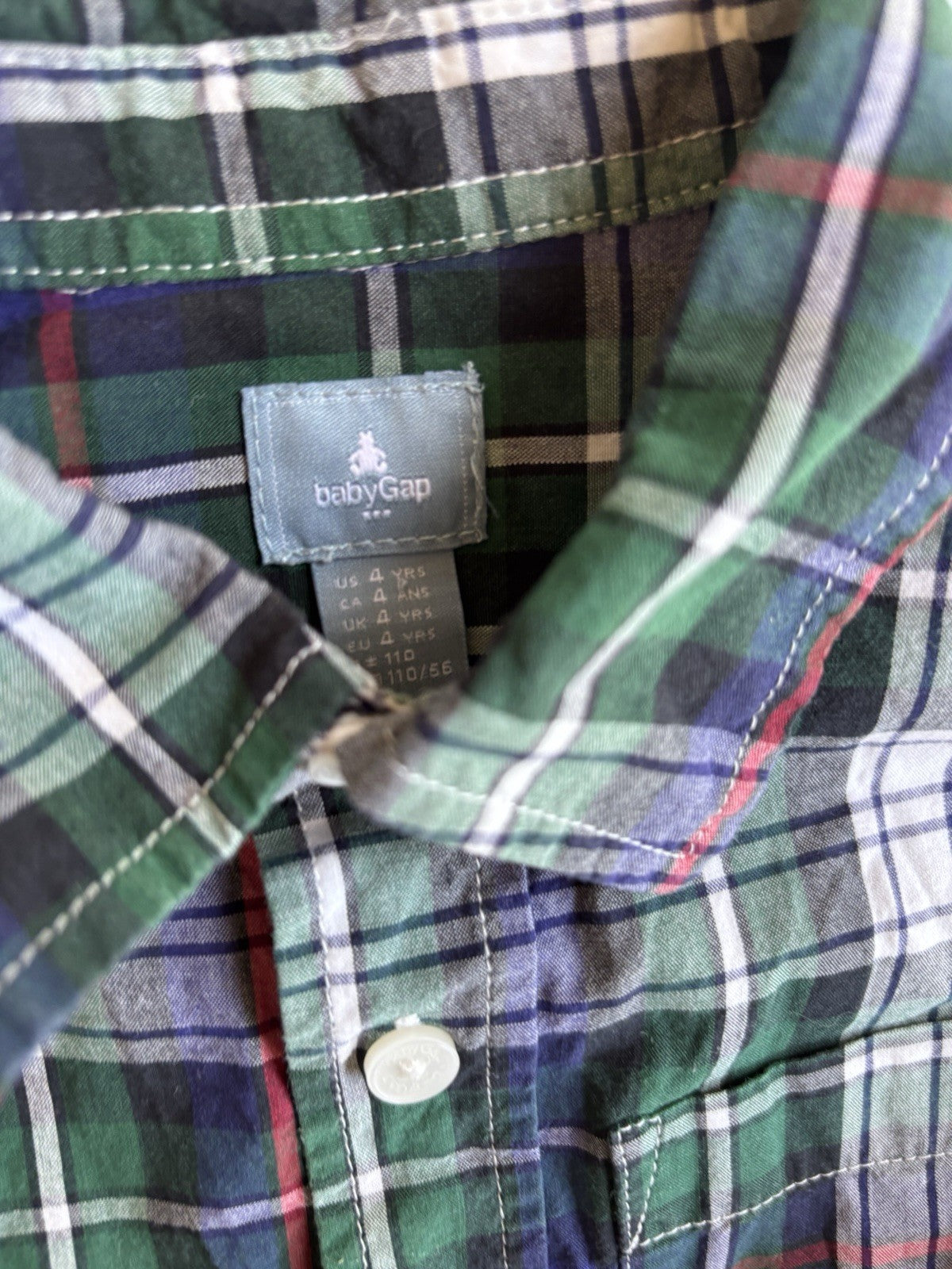 GAP kids boys size 4 years green blue check button up shirt, VGUC