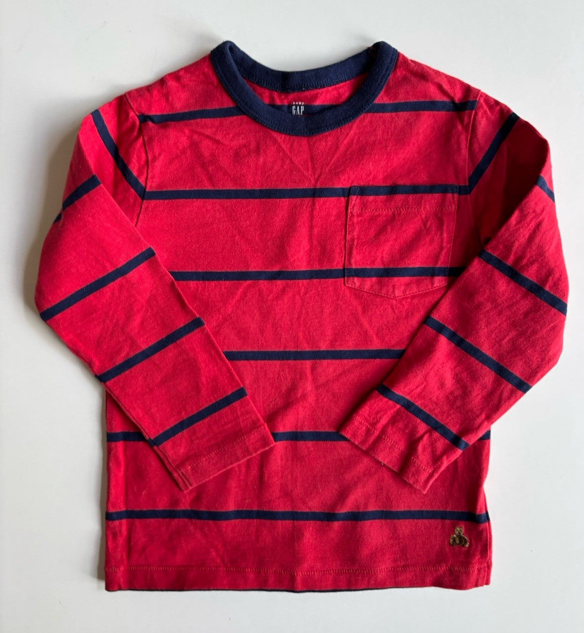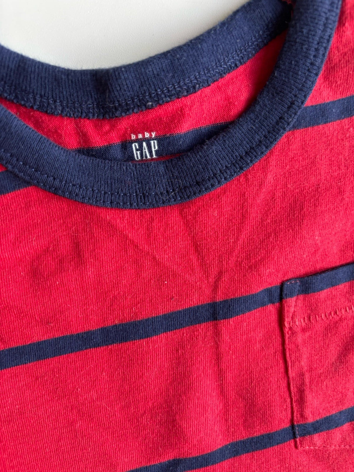 GAP kids boys size 4 years red navy blue stripe long sleeve t-shirt, VGUC