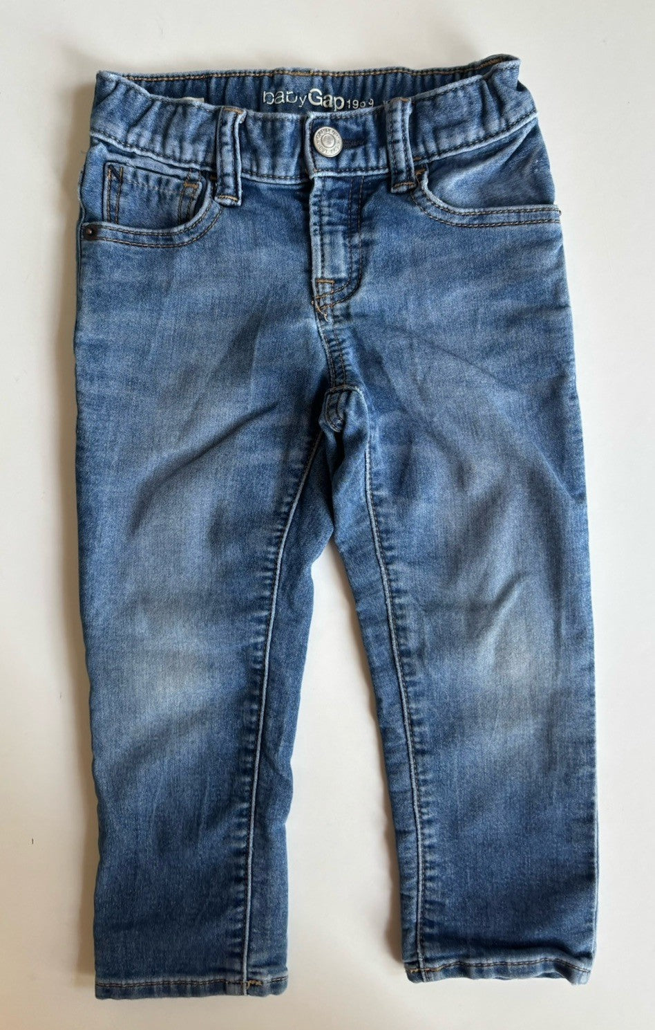 Gap kids toddler size 3 years blue denim slim adjustable waist jeans, VGUC