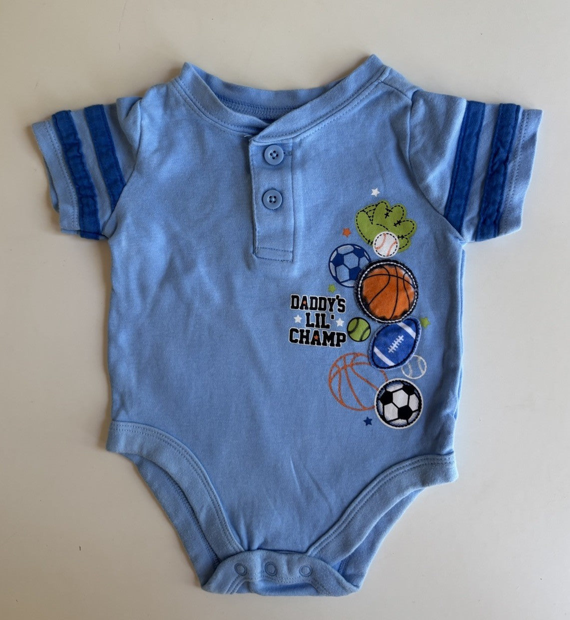 Garanimals baby boy size 3-6 months blue sports t-shirt bodysuit, VGUC