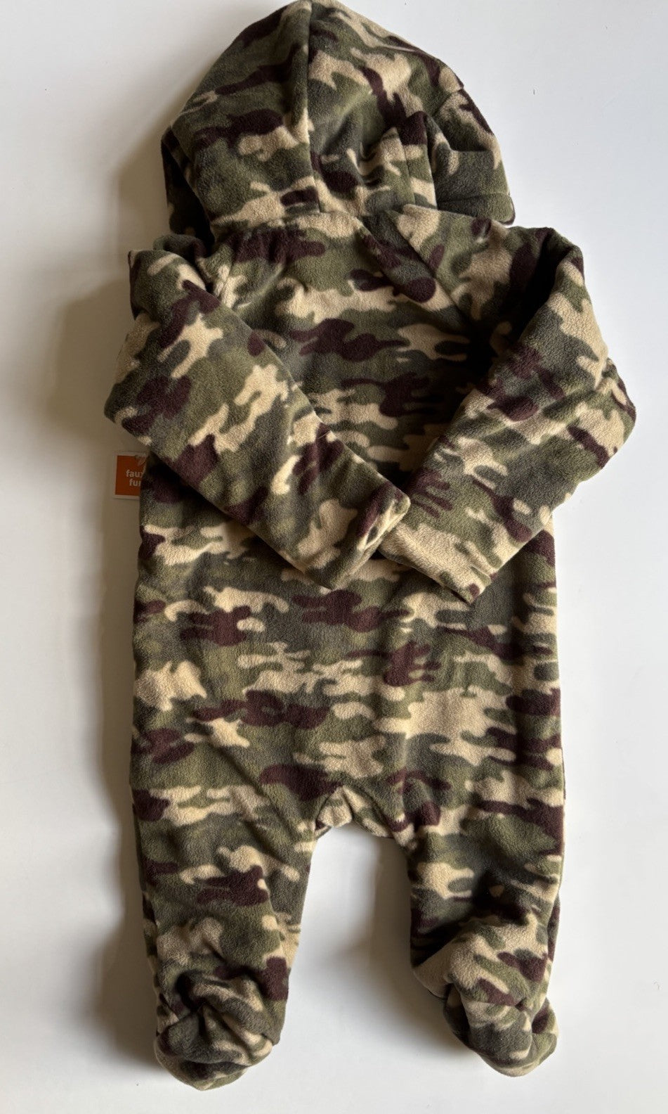 Garanimals baby boy size 3-6 months green brown camo fleecy one-piece, BNWT