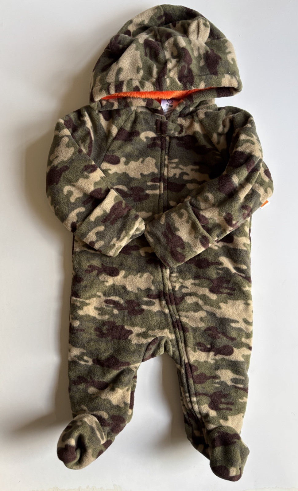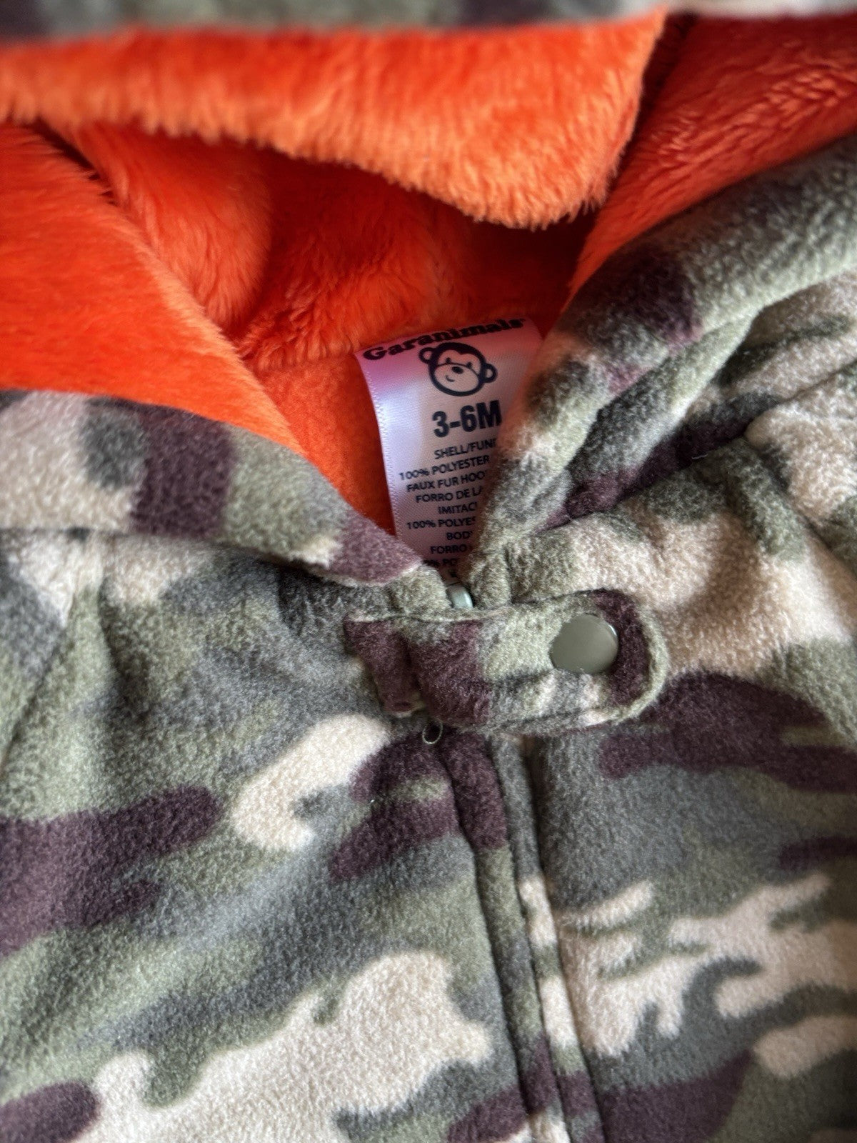 Garanimals baby boy size 3-6 months green brown camo fleecy one-piece,