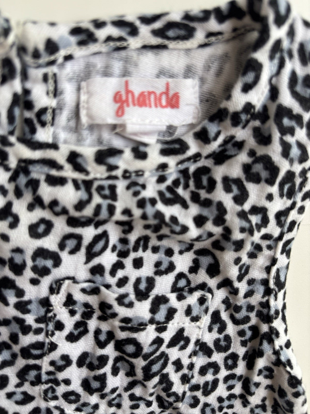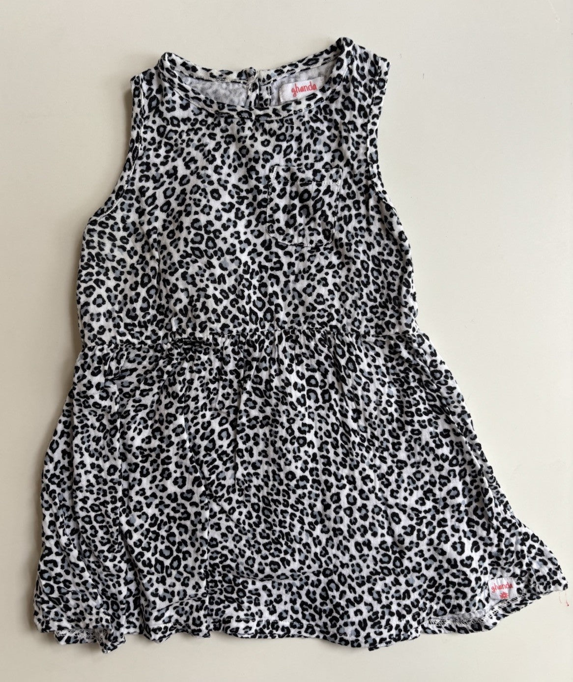 Ghanda baby girl size 1-2 years black blue leopard print dress, VGUC