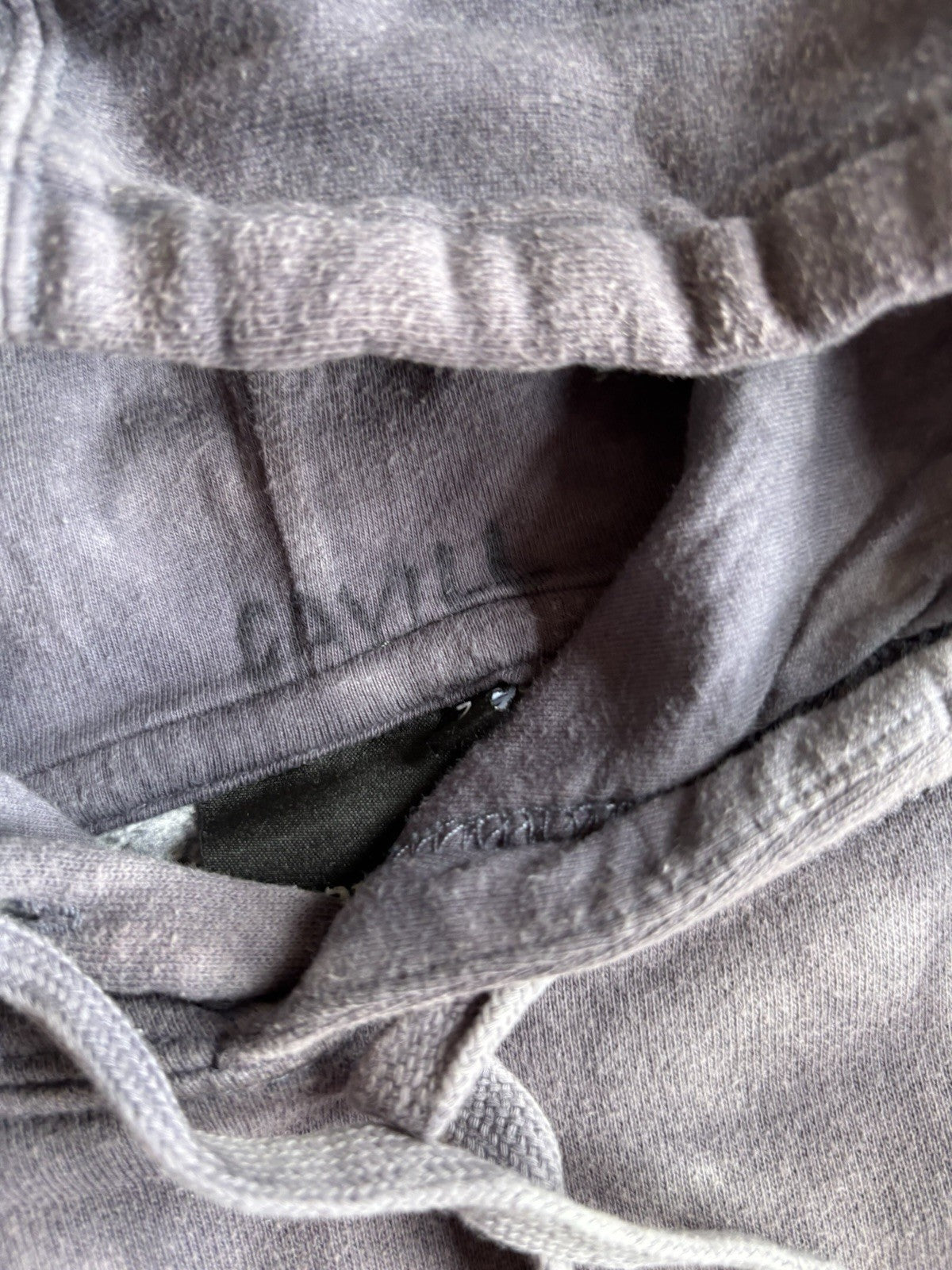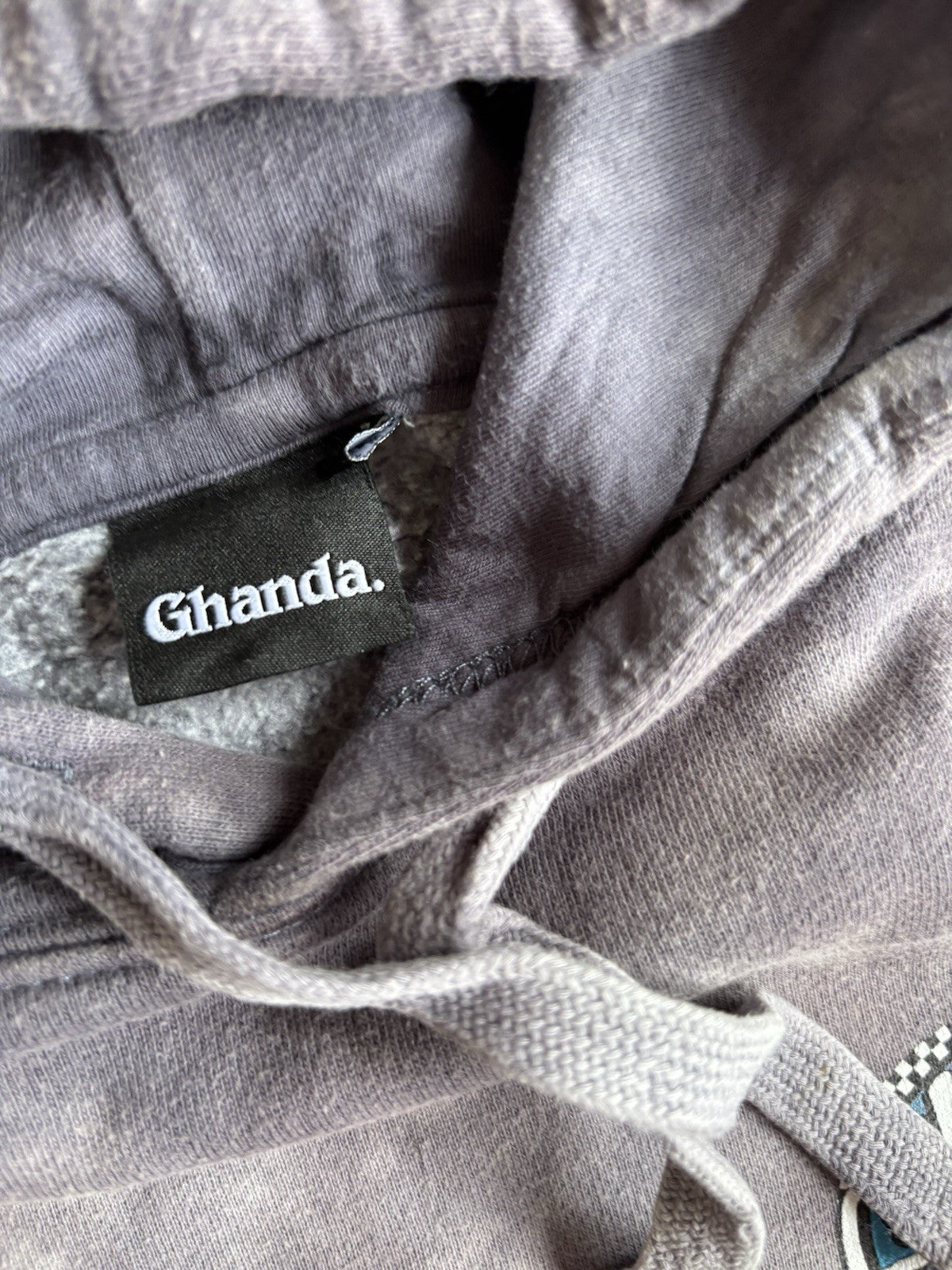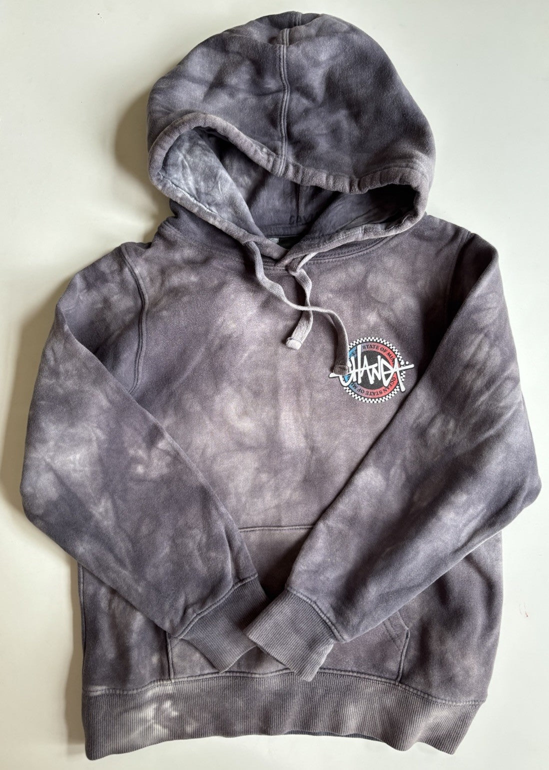 Ghanda kids boys size 7-8 grey tie-dye hooded logo jumper, VGUC