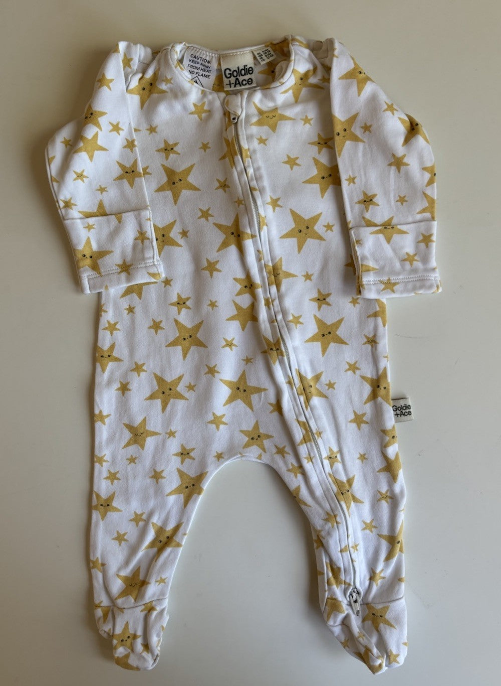 Goldie + Ace baby size 0-3 months yellow stars one-piece, VGUC