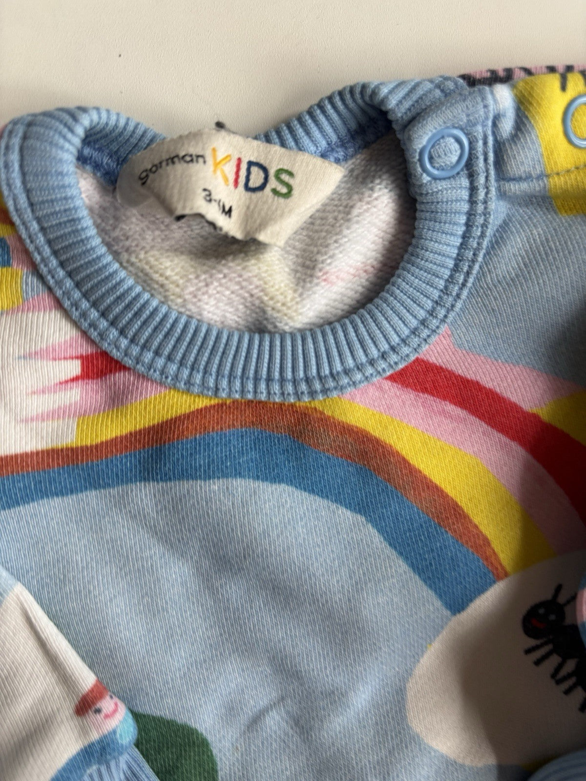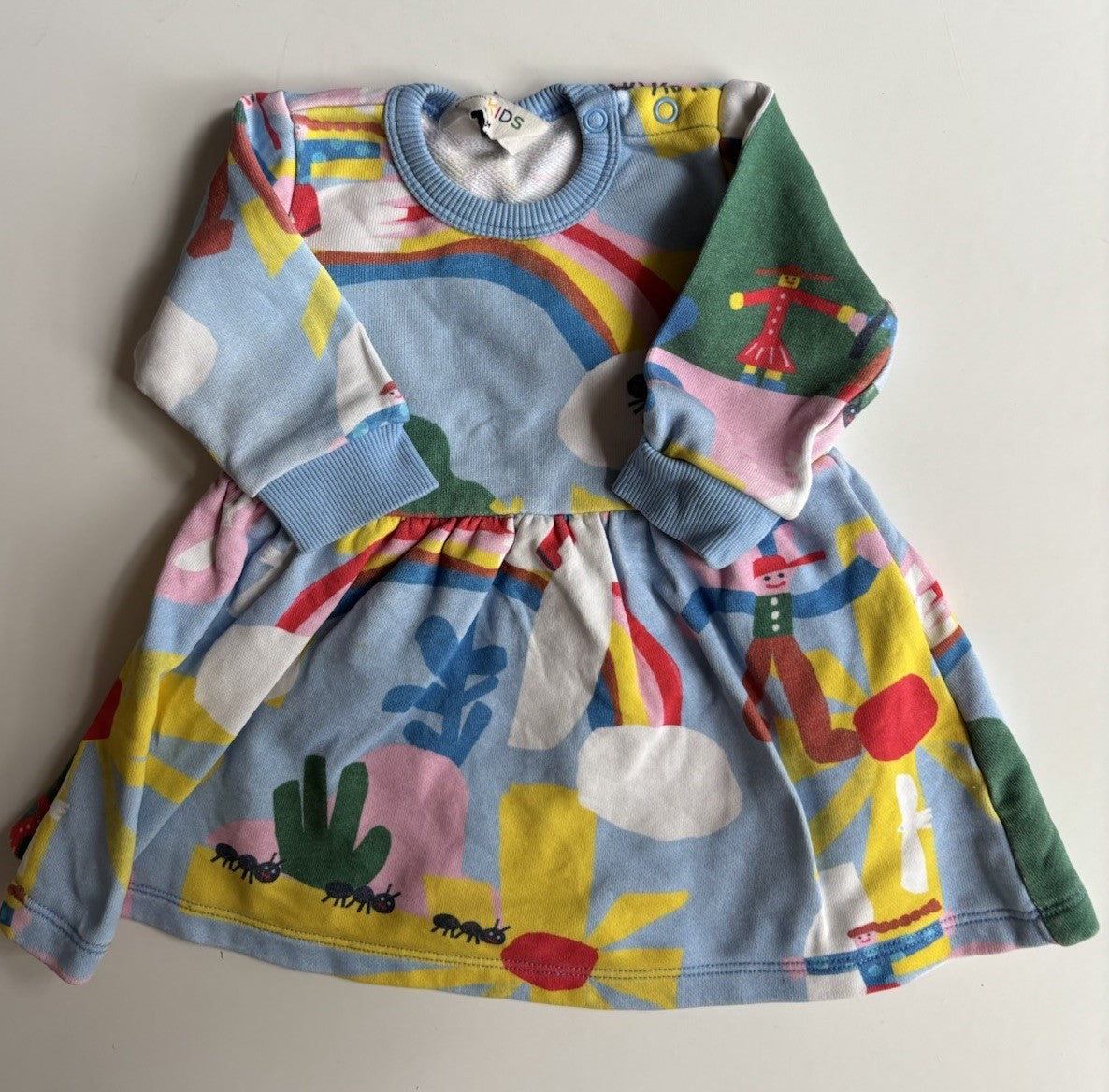 Gorman Kids baby girl size 3-6 months blue rainbows ants jumper dress,