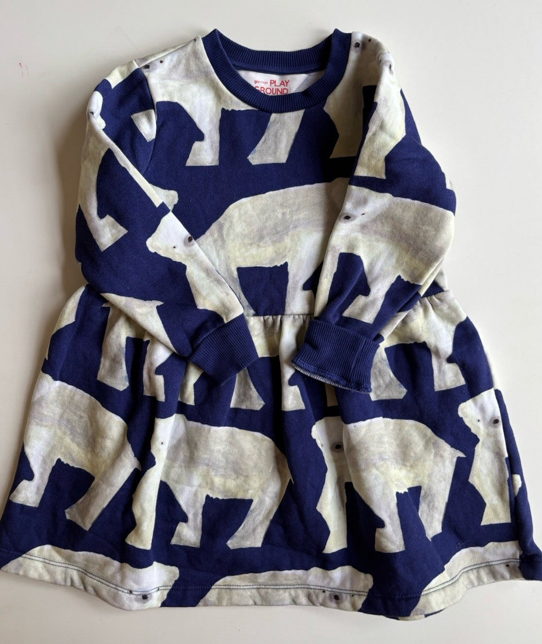 Gorman Playground kids girls toddler size 3-4 blue white polar bear dress, EUC
