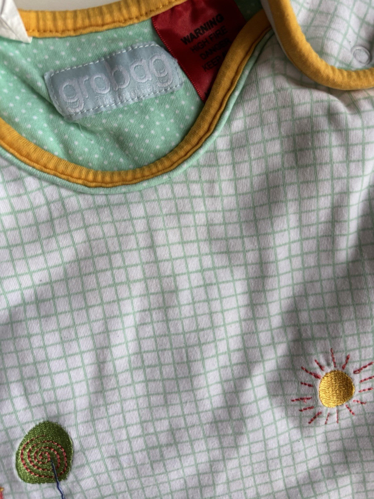 Grobag baby size 6-18 months green check animals 1.0 tog sleeping bag, VGUC