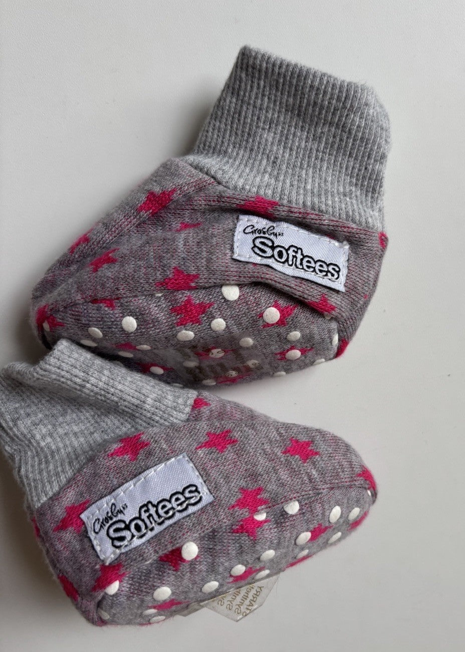 Grosby's Softees baby girl size 6-12 months grey pink stars booties, E