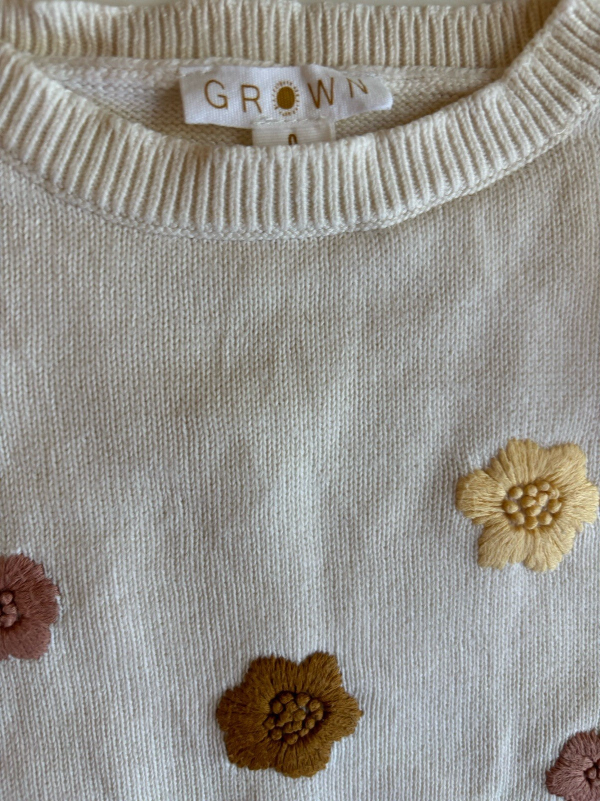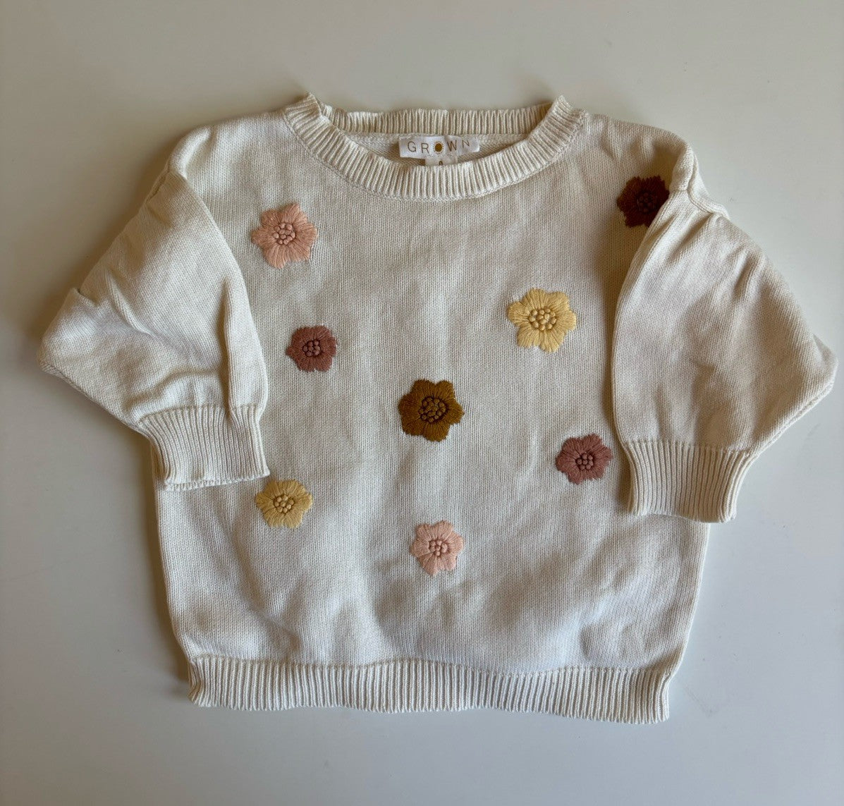 GROWN baby girl size 6-12 months white knitted jumper flowers, VGUC