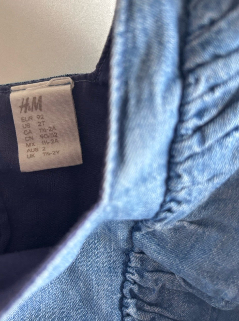 H&M baby girl size 18-24 months blue denim frill sleeve dress, VGUC
