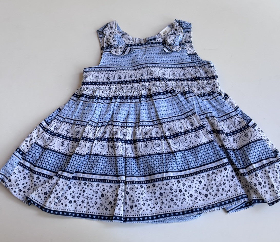 H&M baby girl size 3-6 months blue patterned sleeveless dress, VGUC
