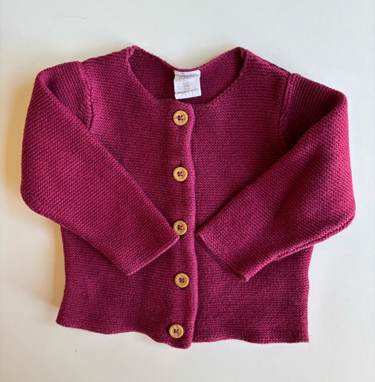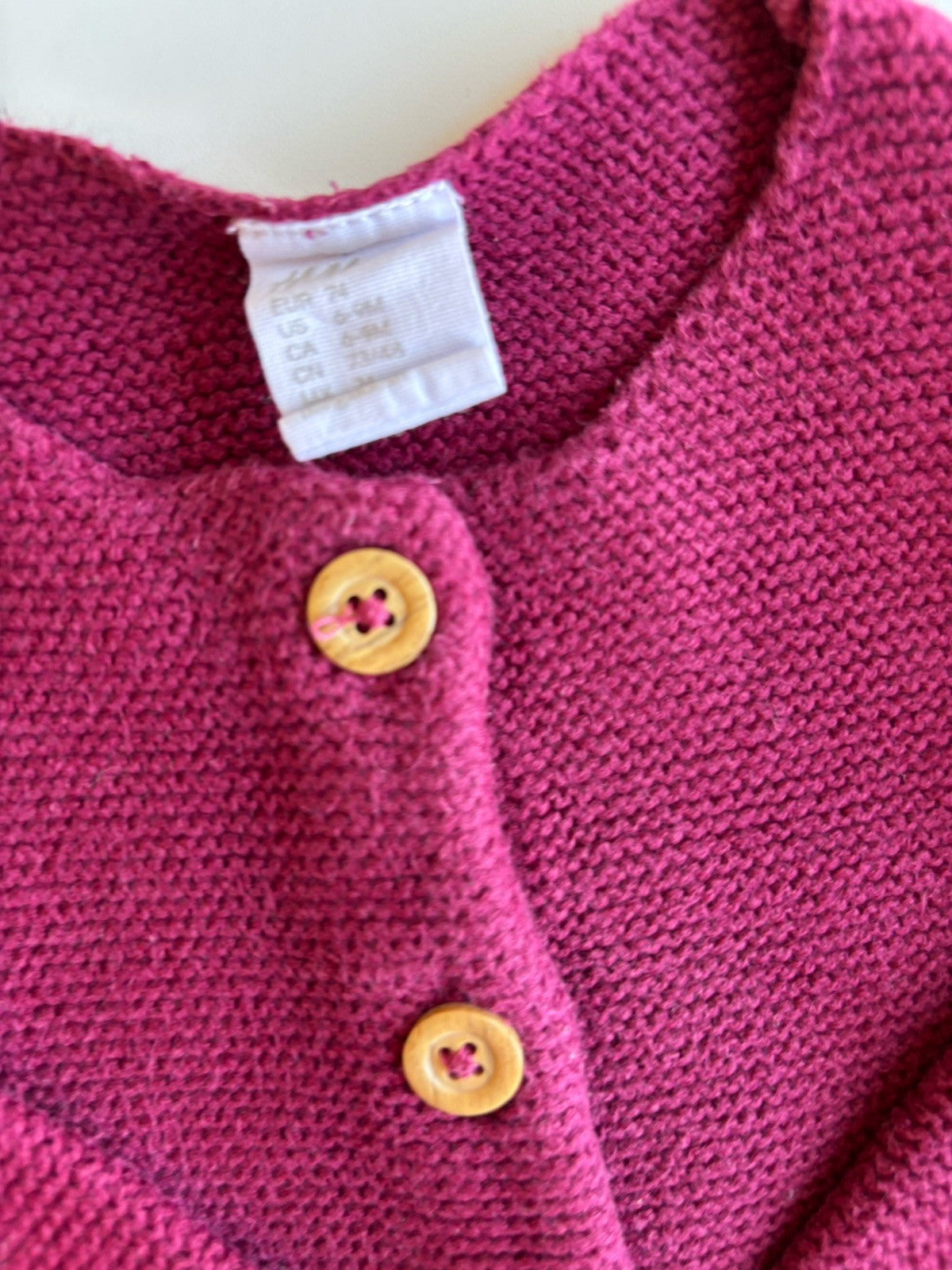 H&M baby girl size 6-12 months dark pink knitted cardigan jumper, VGUC