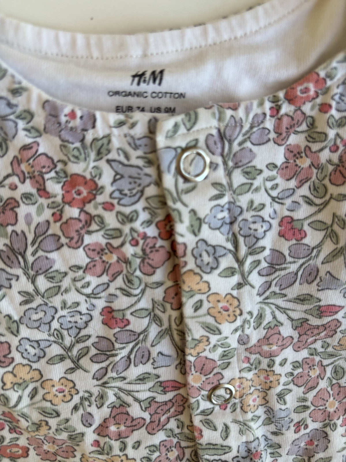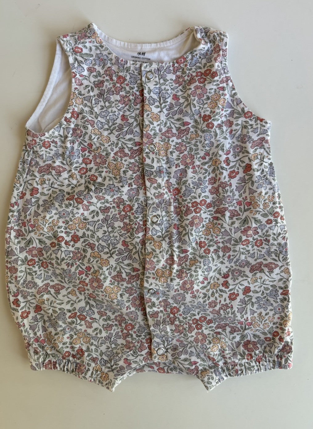 H&M baby girl size 6-12 months white colourful floral romper, VGUC