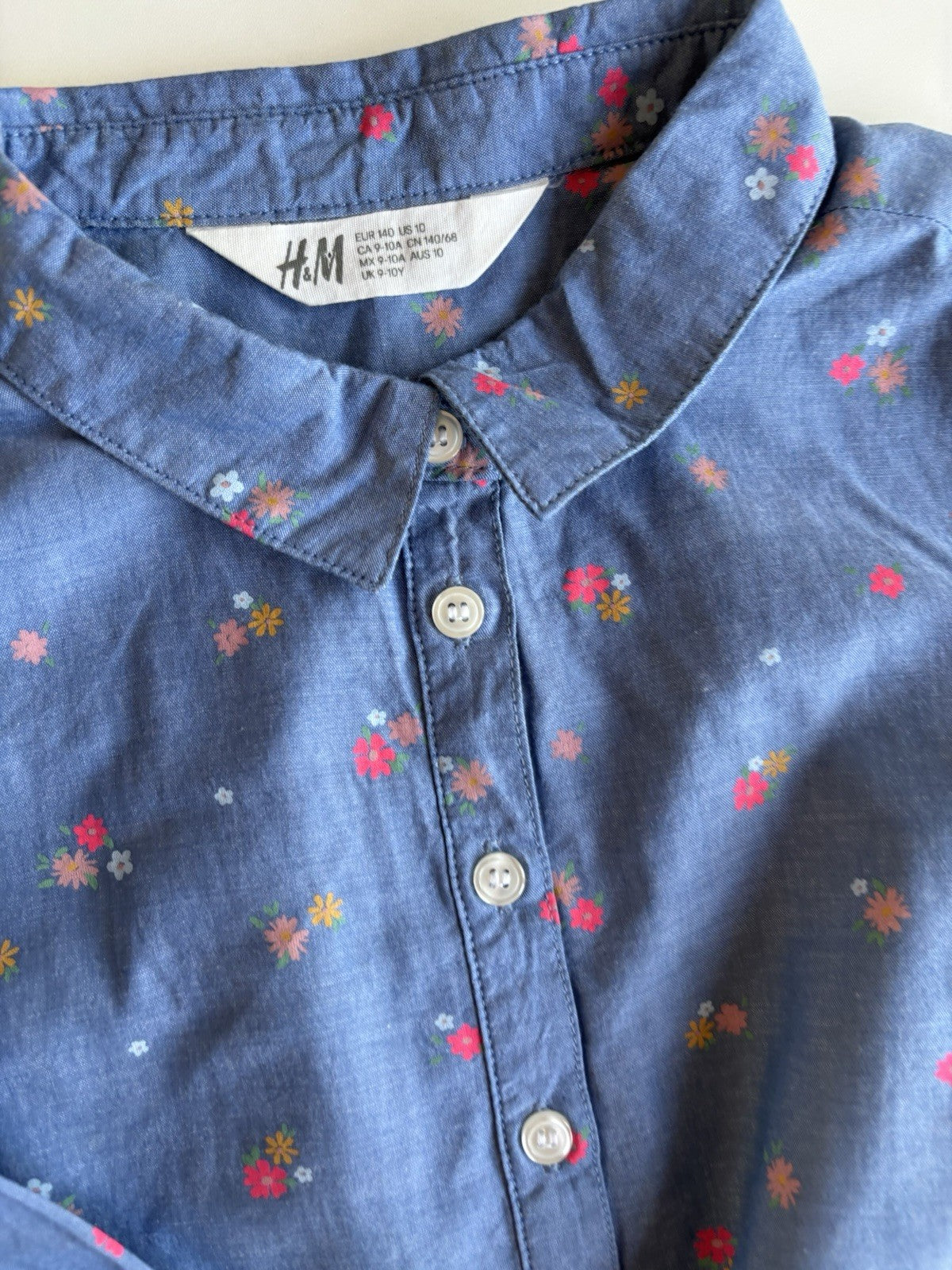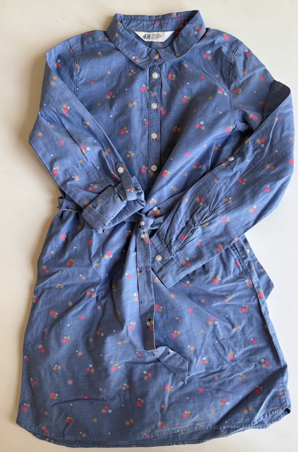 H&M kids girls size 10 denim blue floral belted shirt dress, VGUC