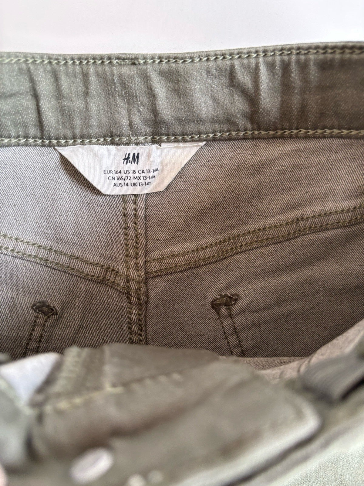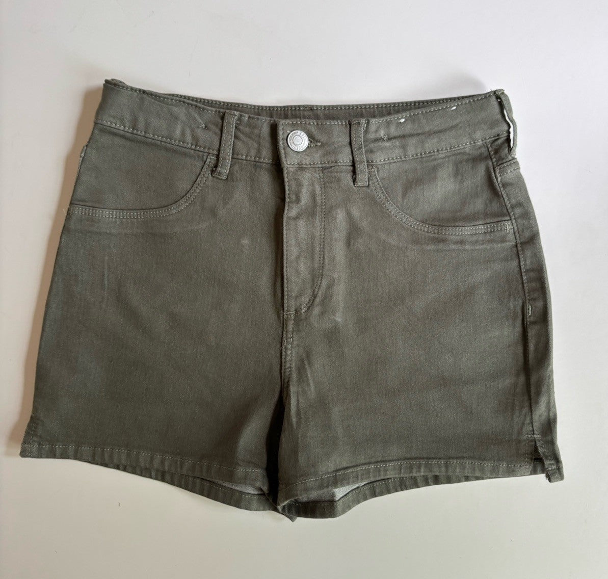 H&M kids girls size 14 olive green denim mini shorts, VGUC