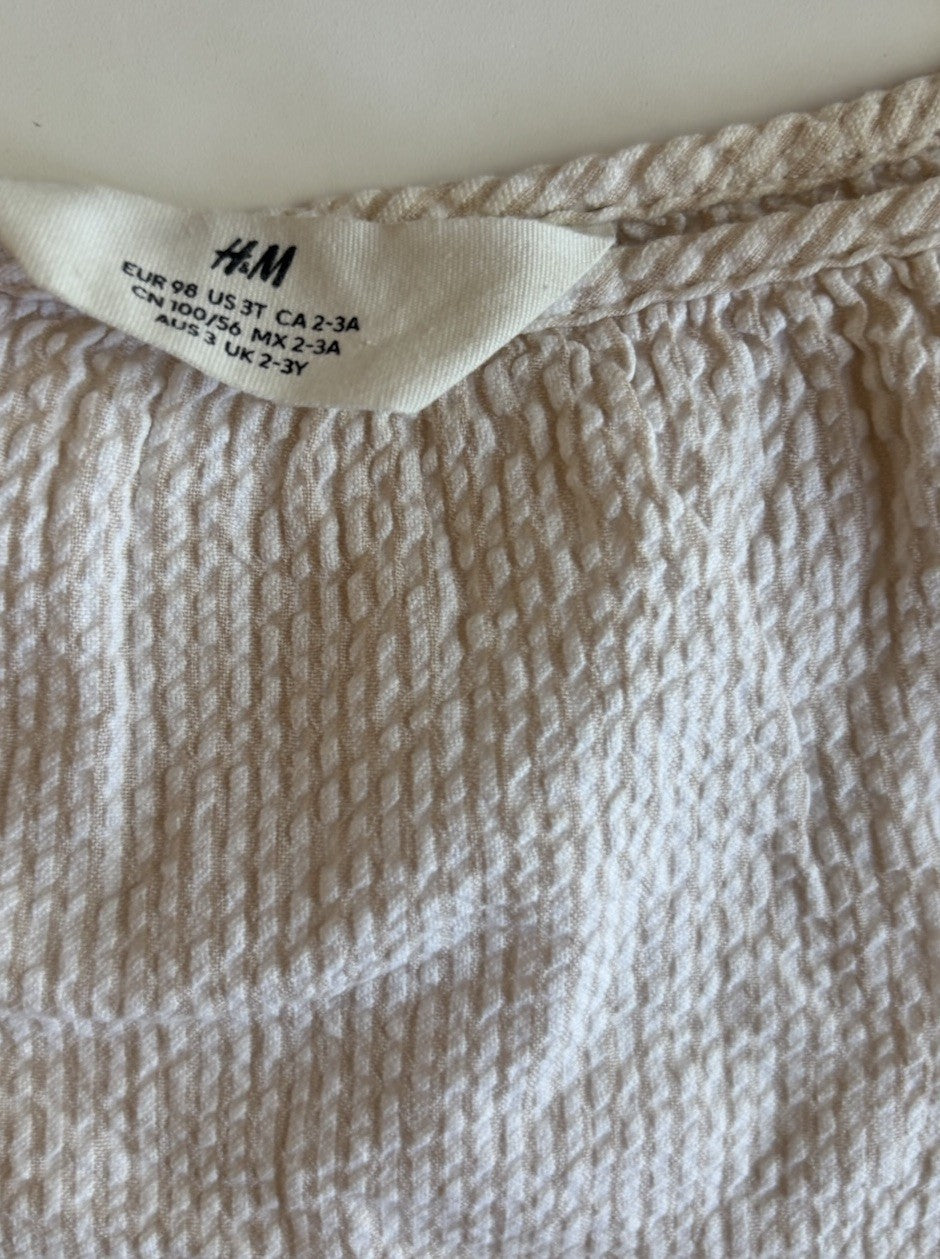 H&M kids girls toddler size 3 beige white stripe summer dress, VGUC