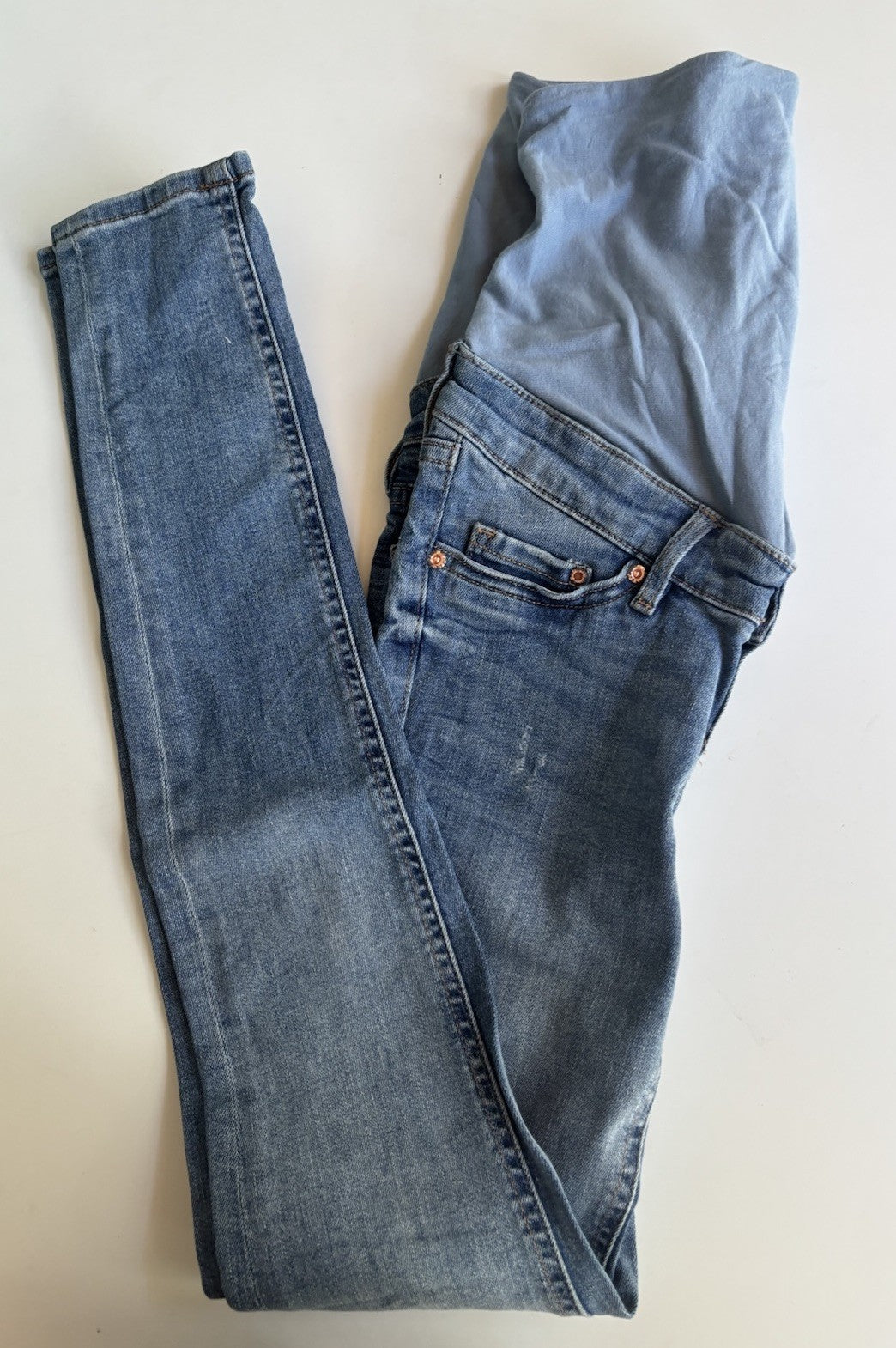 H&M Mama women's size US 4/UK 8 blue denim over bump maternity jeans, VGUC