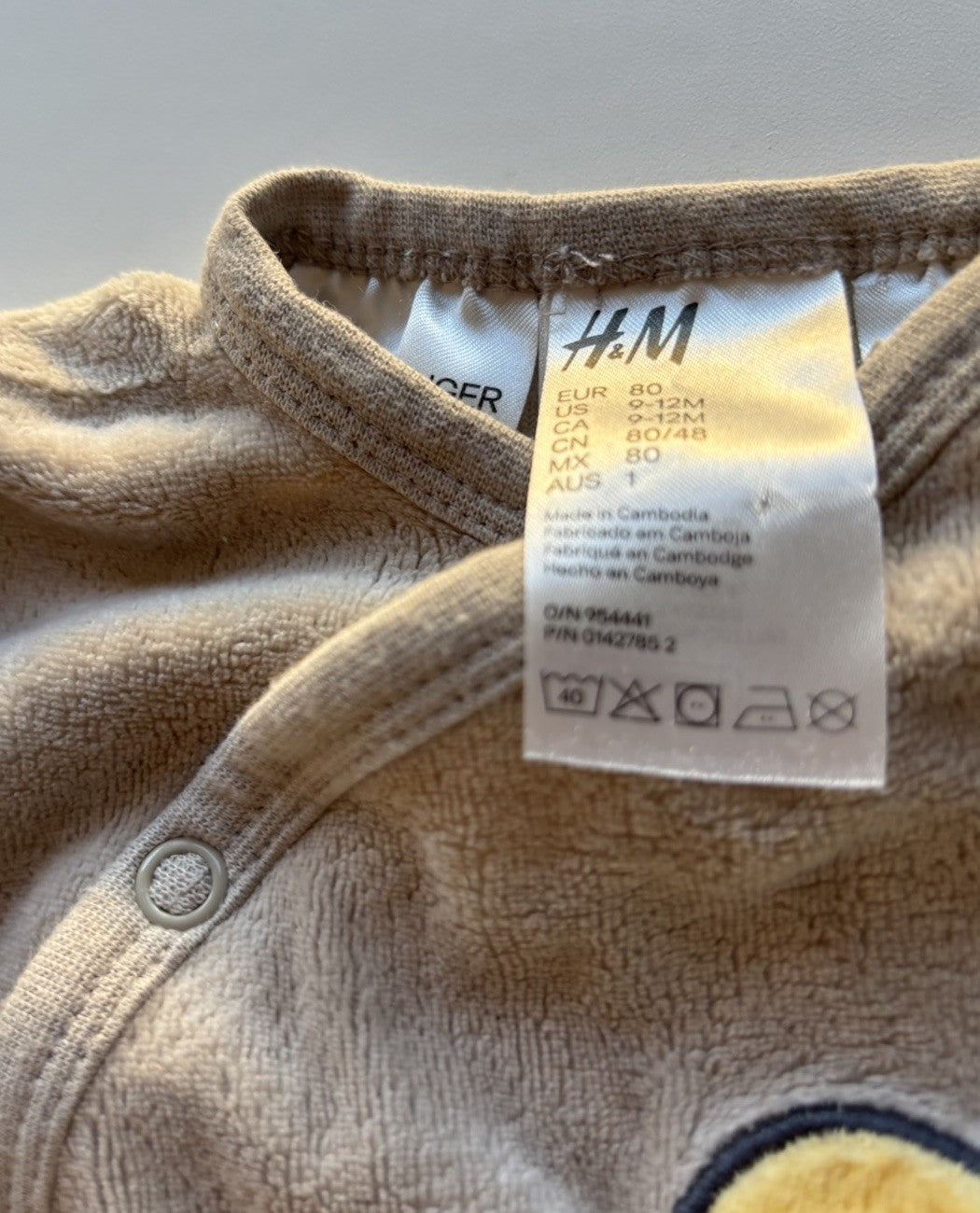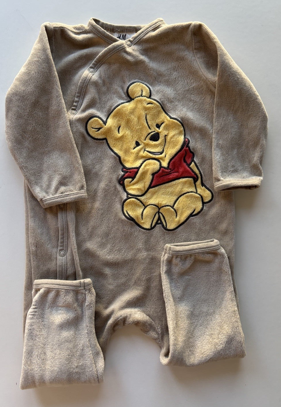 H&M x Disney baby size 9-12 months beige velour Winnie the Pooh one-piece, VGUC